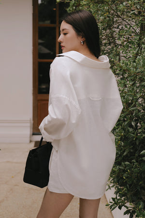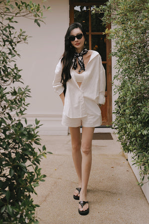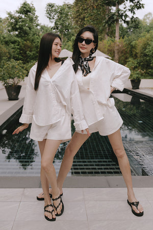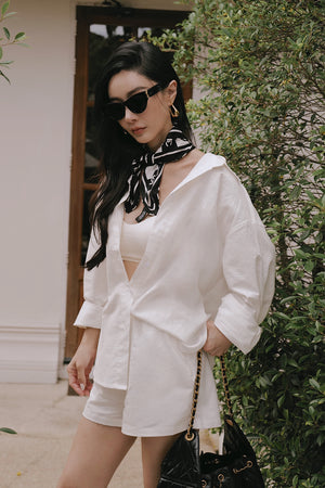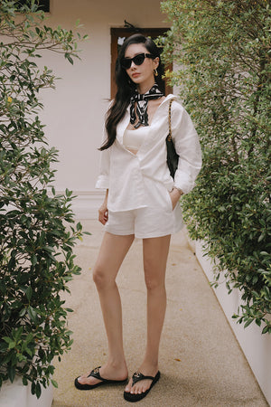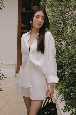 Stain-Resistant Cotton-Linen Long Sleeve Shirt & Waist Shorts Set