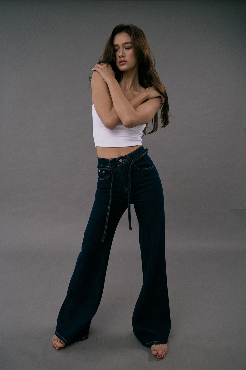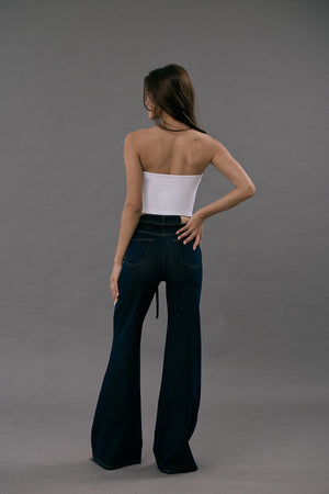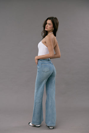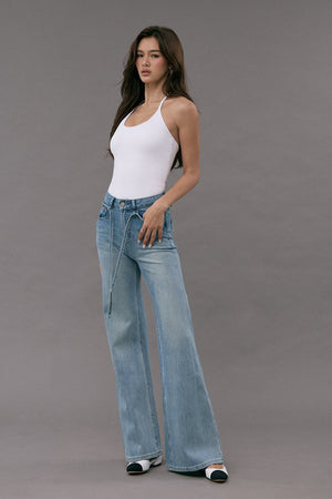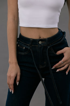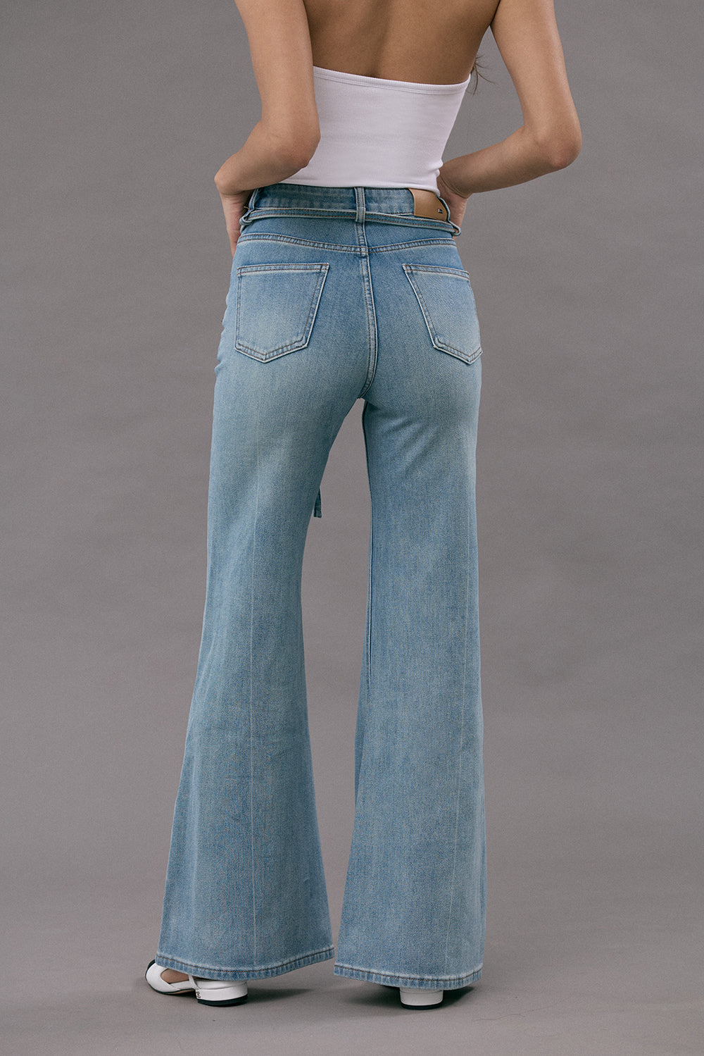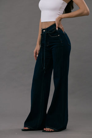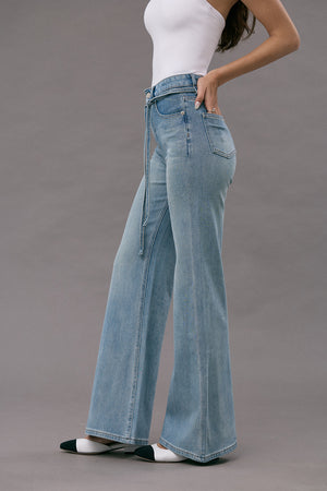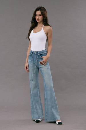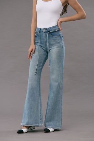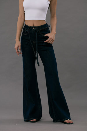 Ultra Stretch Flare Denim Jeans with Belt