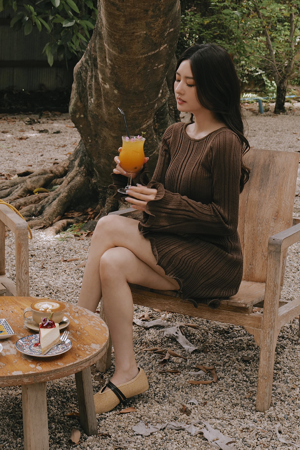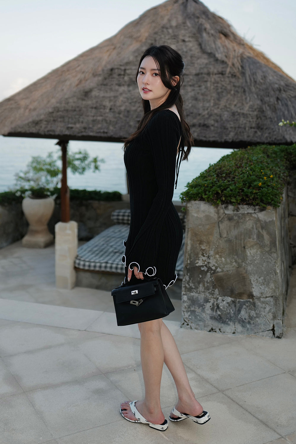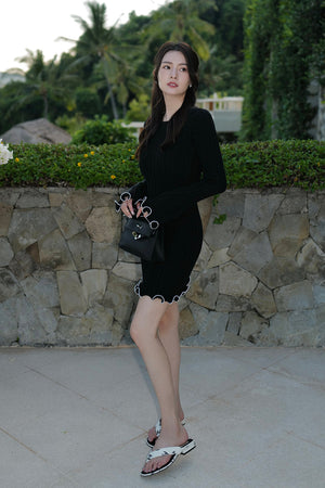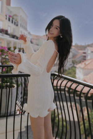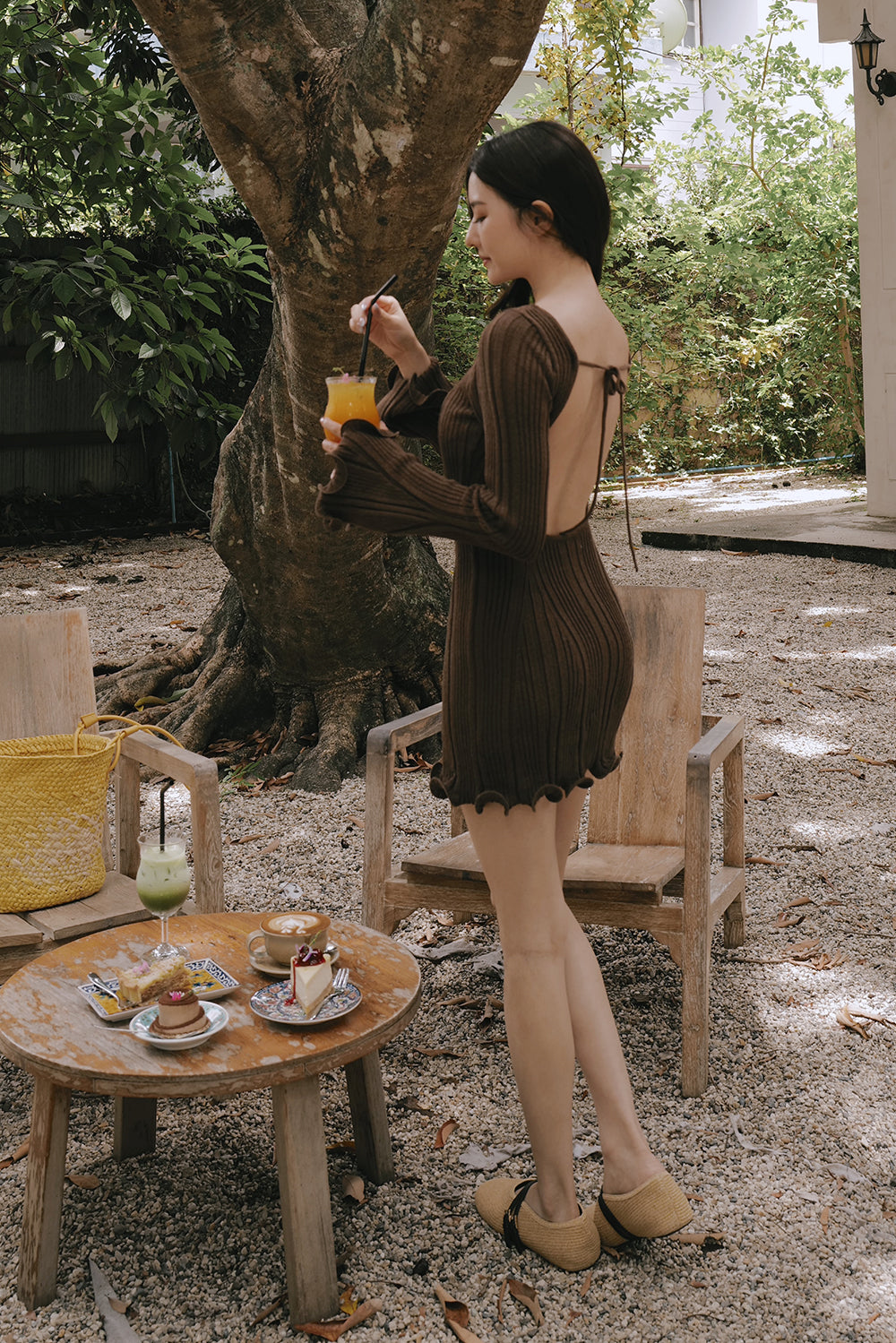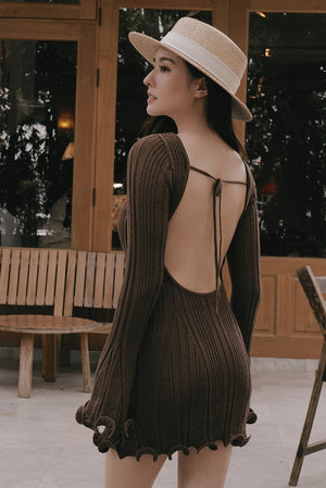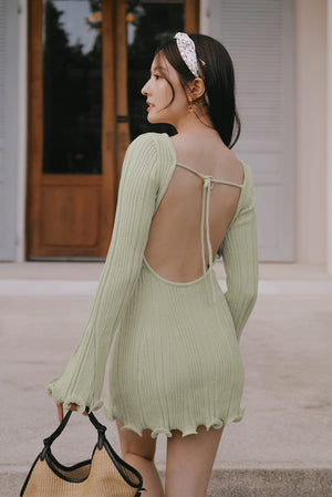 Wide Ribbed Knit Backless Ruffle Hem Mini Bra Dress