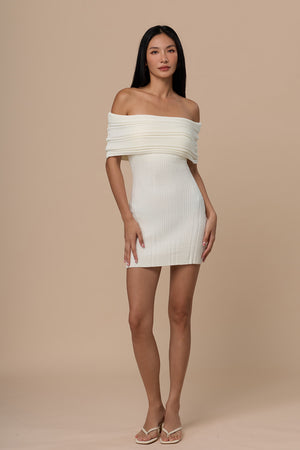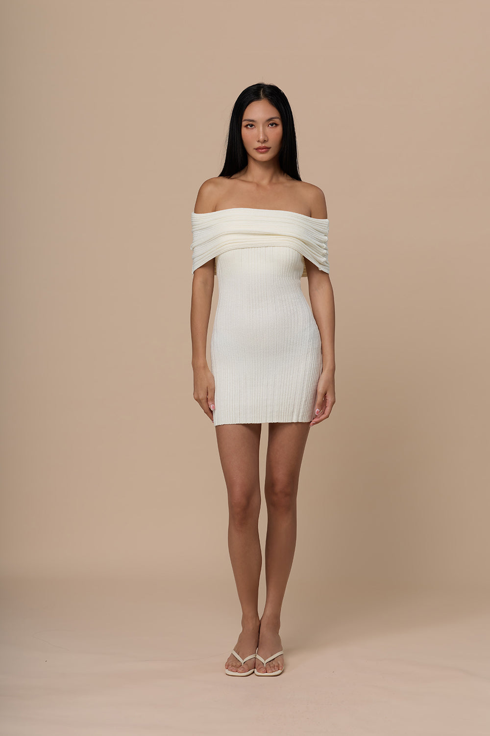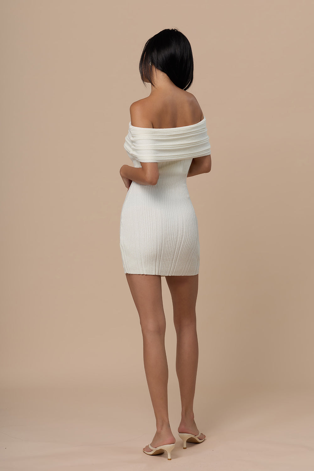 Wide Ribbed Knit Off-Shoulder Mini Bra Dress