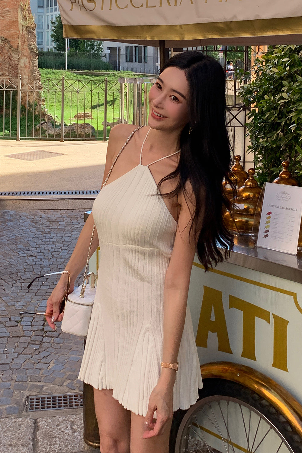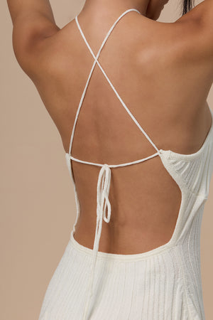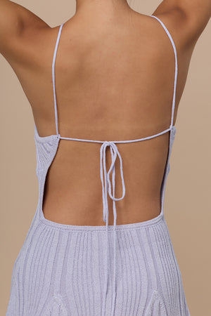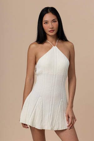 Wide Ribbed Knit Ruffled Hem Halter Mini Bra Dress