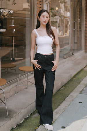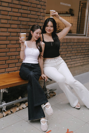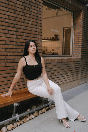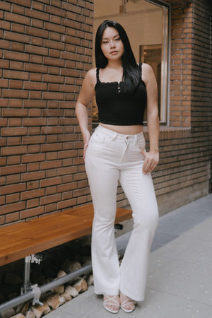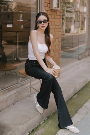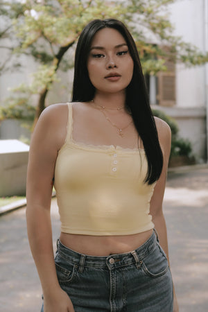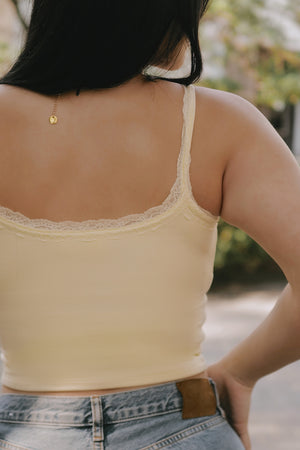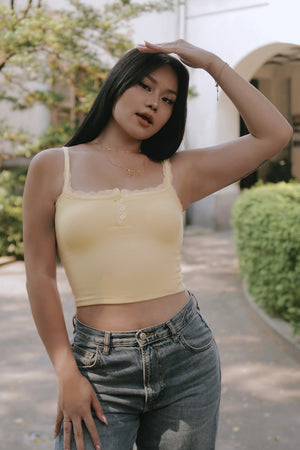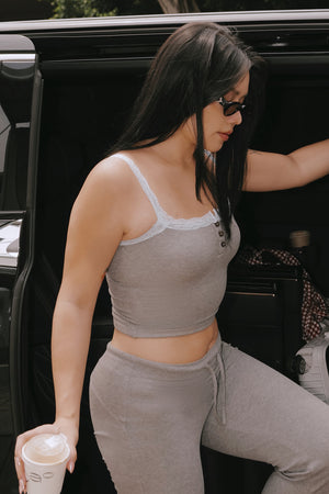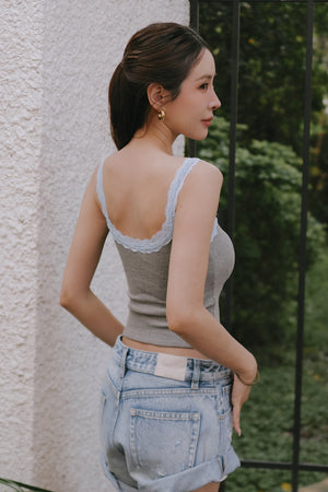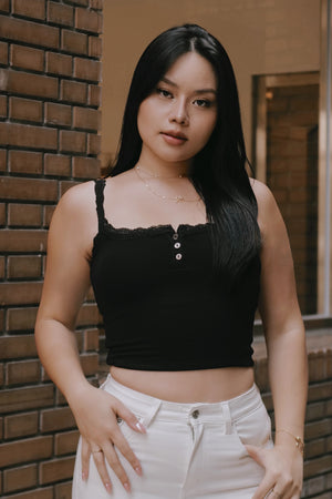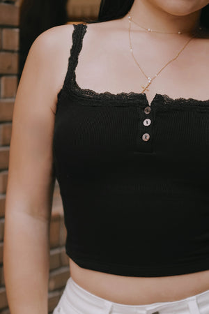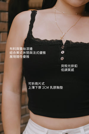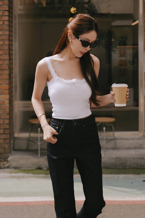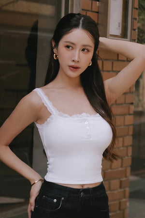 Elegant Rib Lace Trim Henley Wide Strap Bra Top