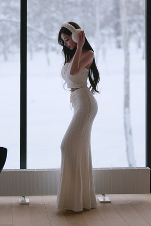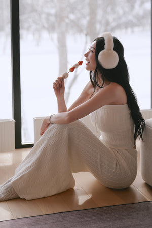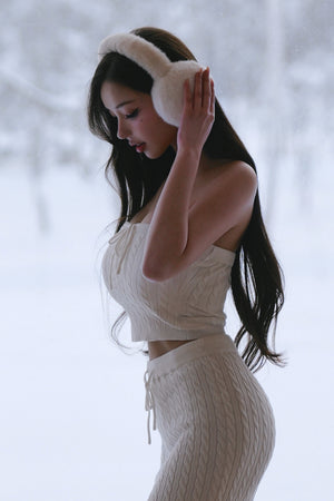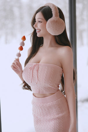 Gentle Touch Fine Cable Knit Tie-Front Strapless Bra Top