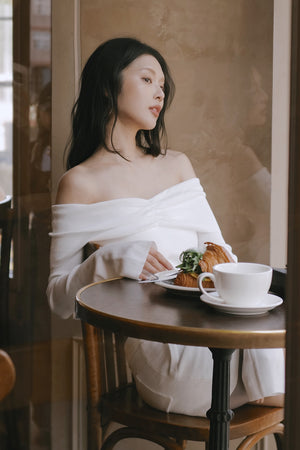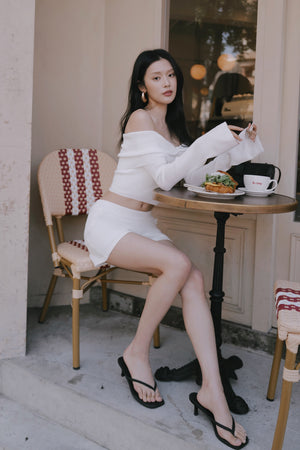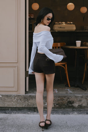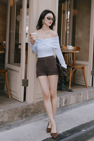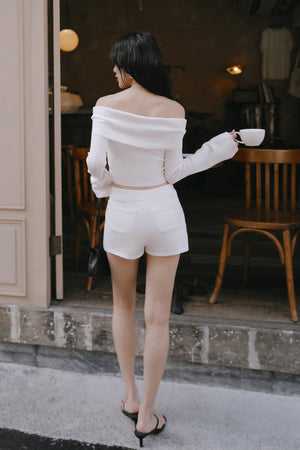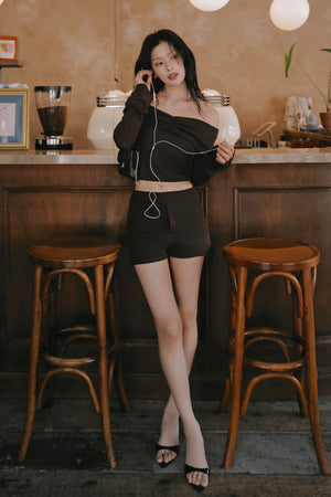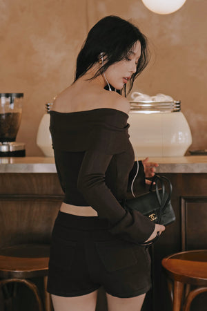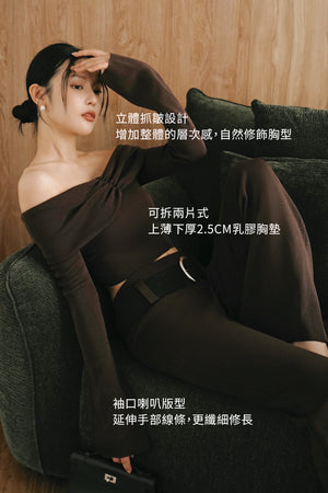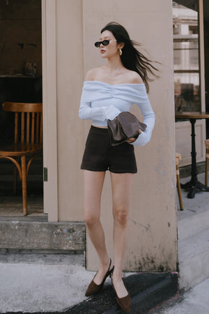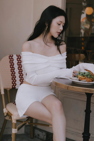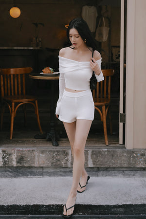 Ice Knit Pleated Off-the-Shoulder Long Sleeve Bra Top