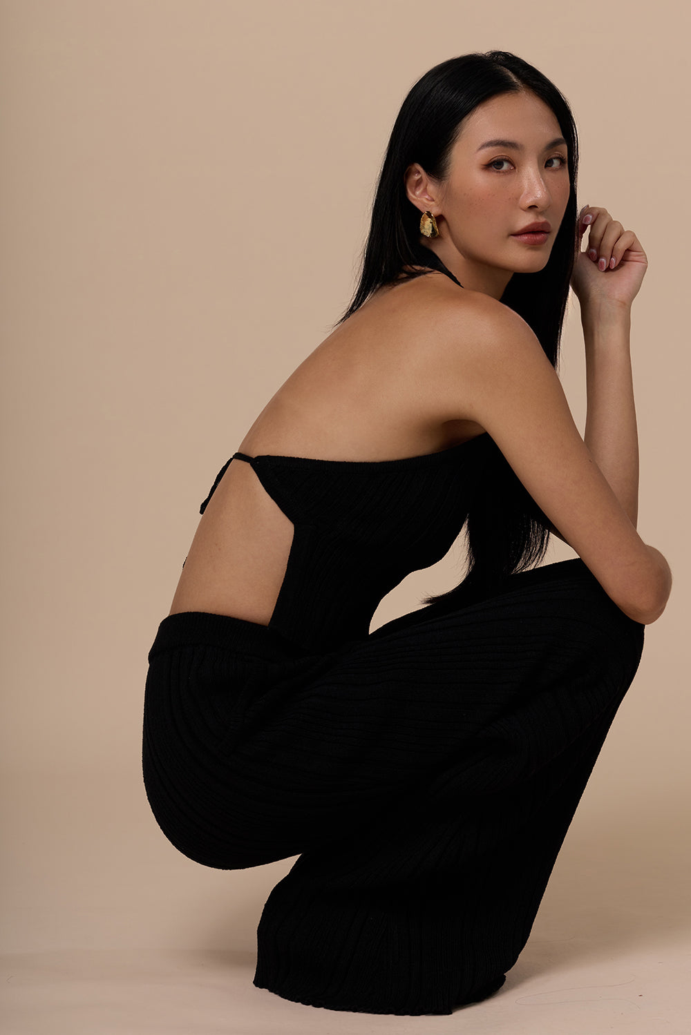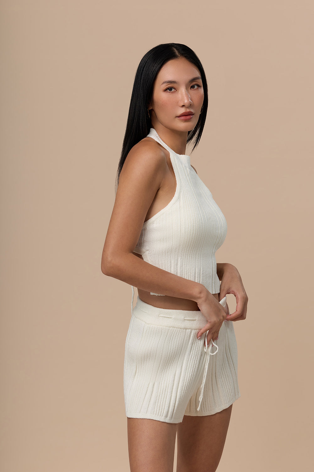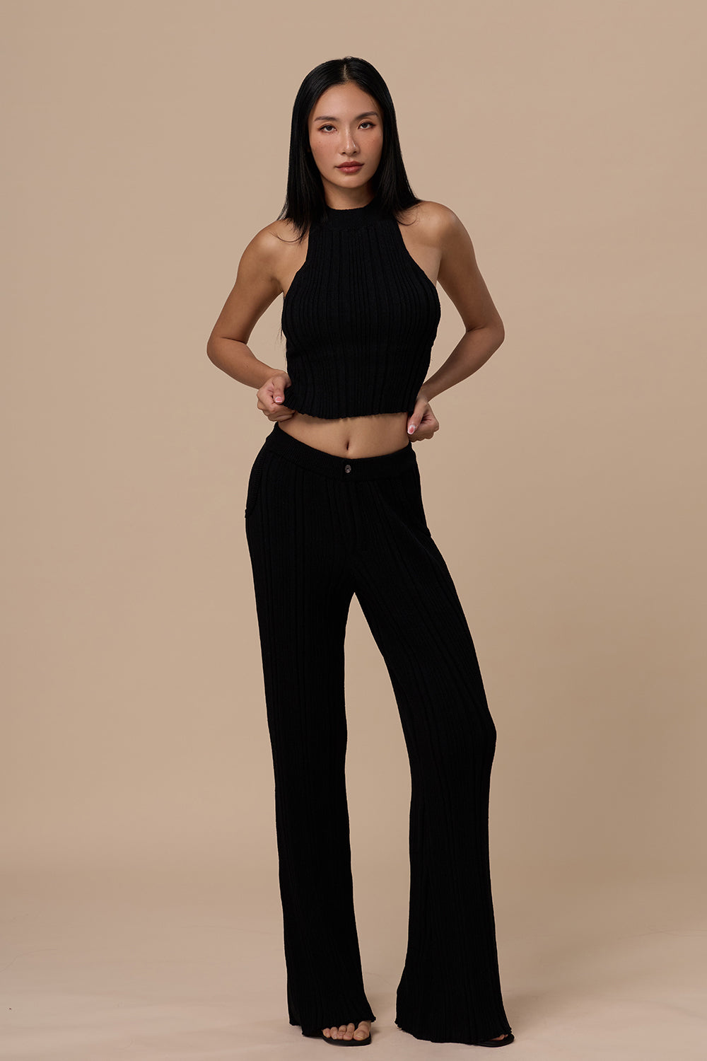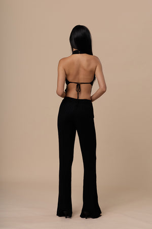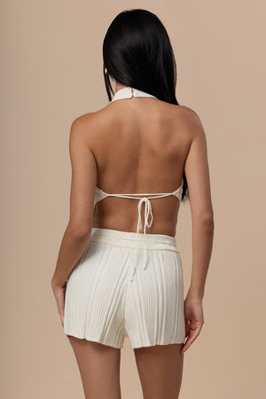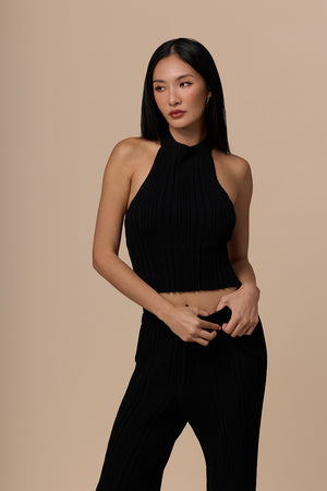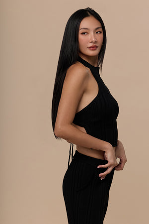 Wide Ribbed Knit Halter Backless BraTop