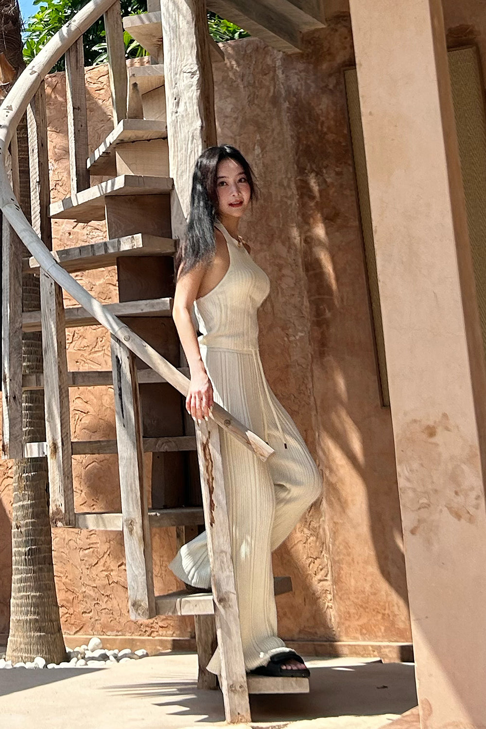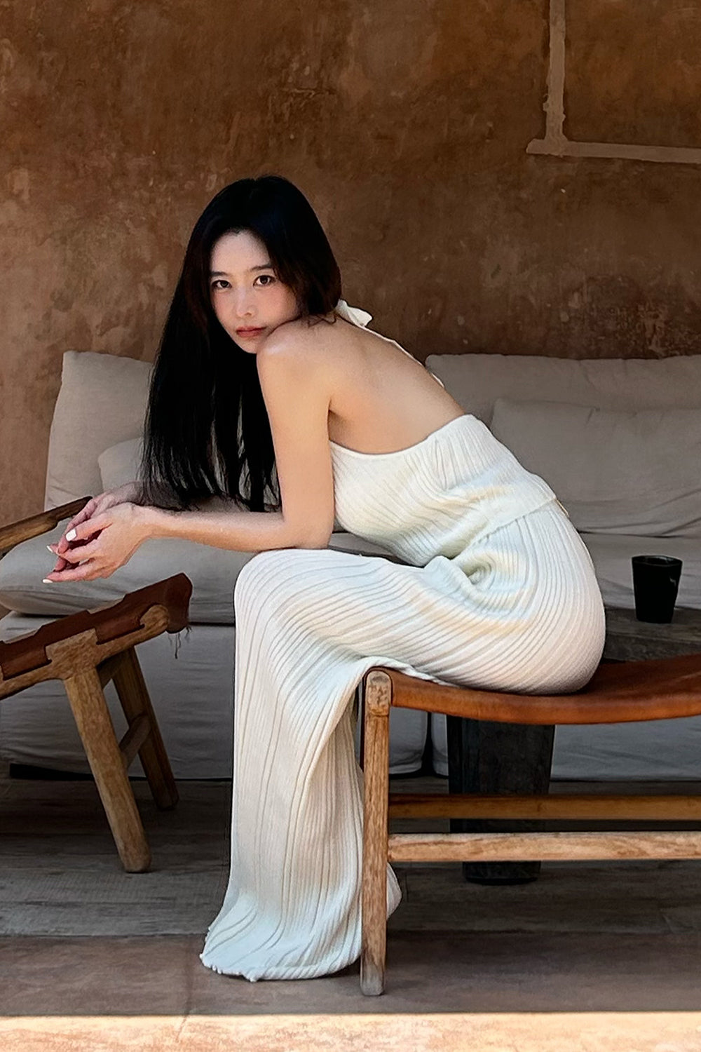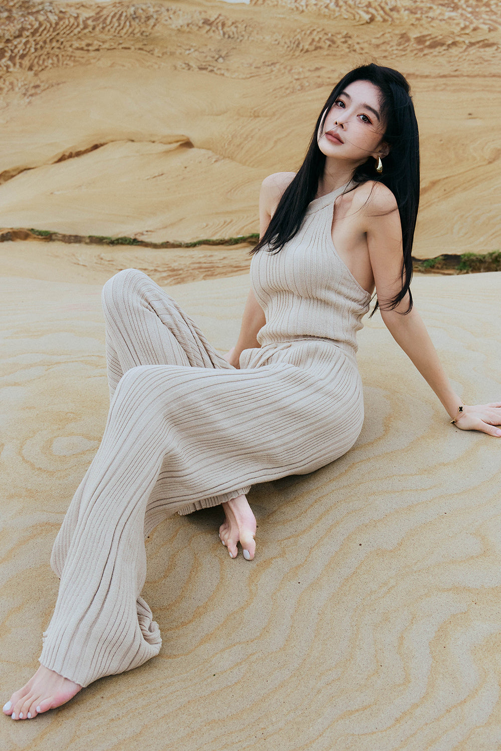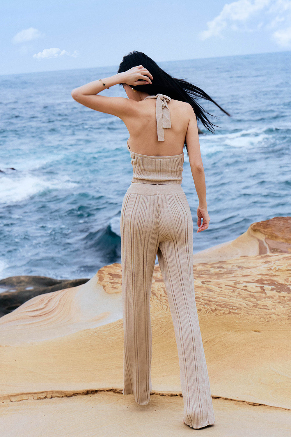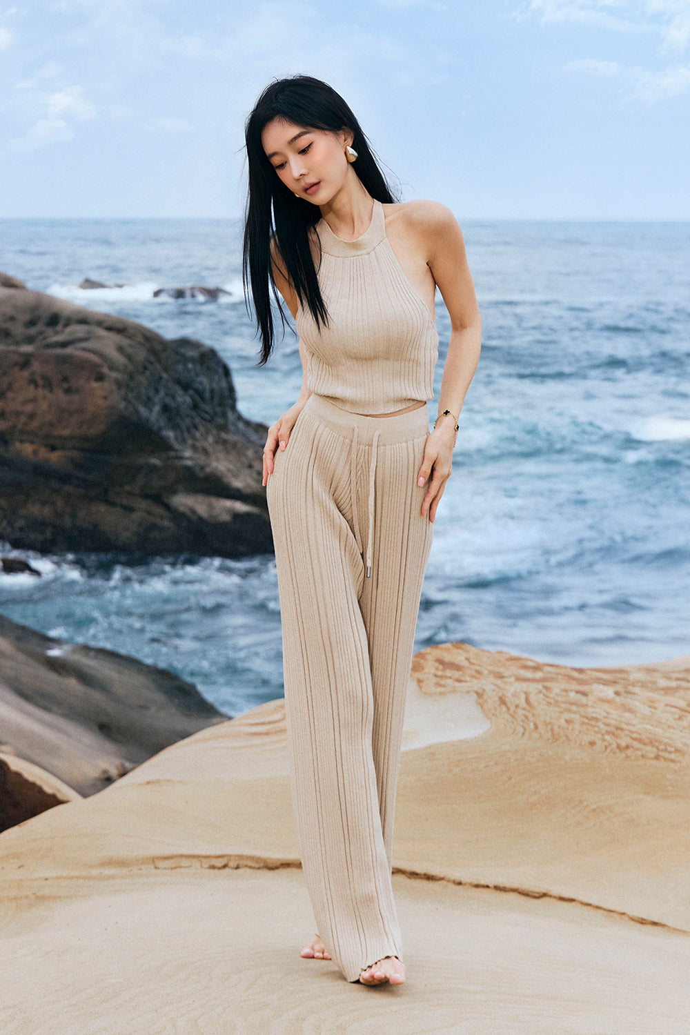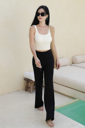 WIDE RIBBED KNIT PANTS