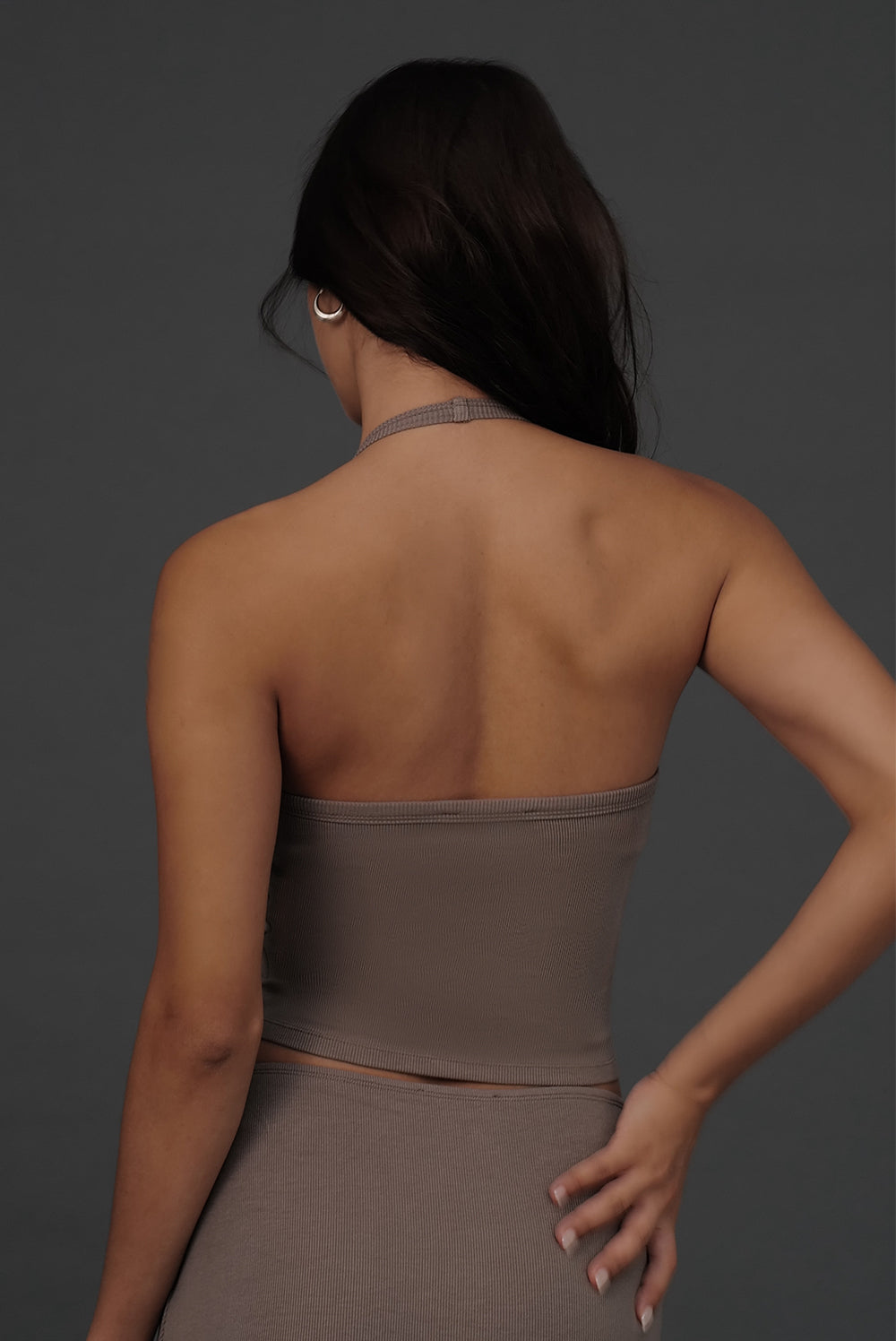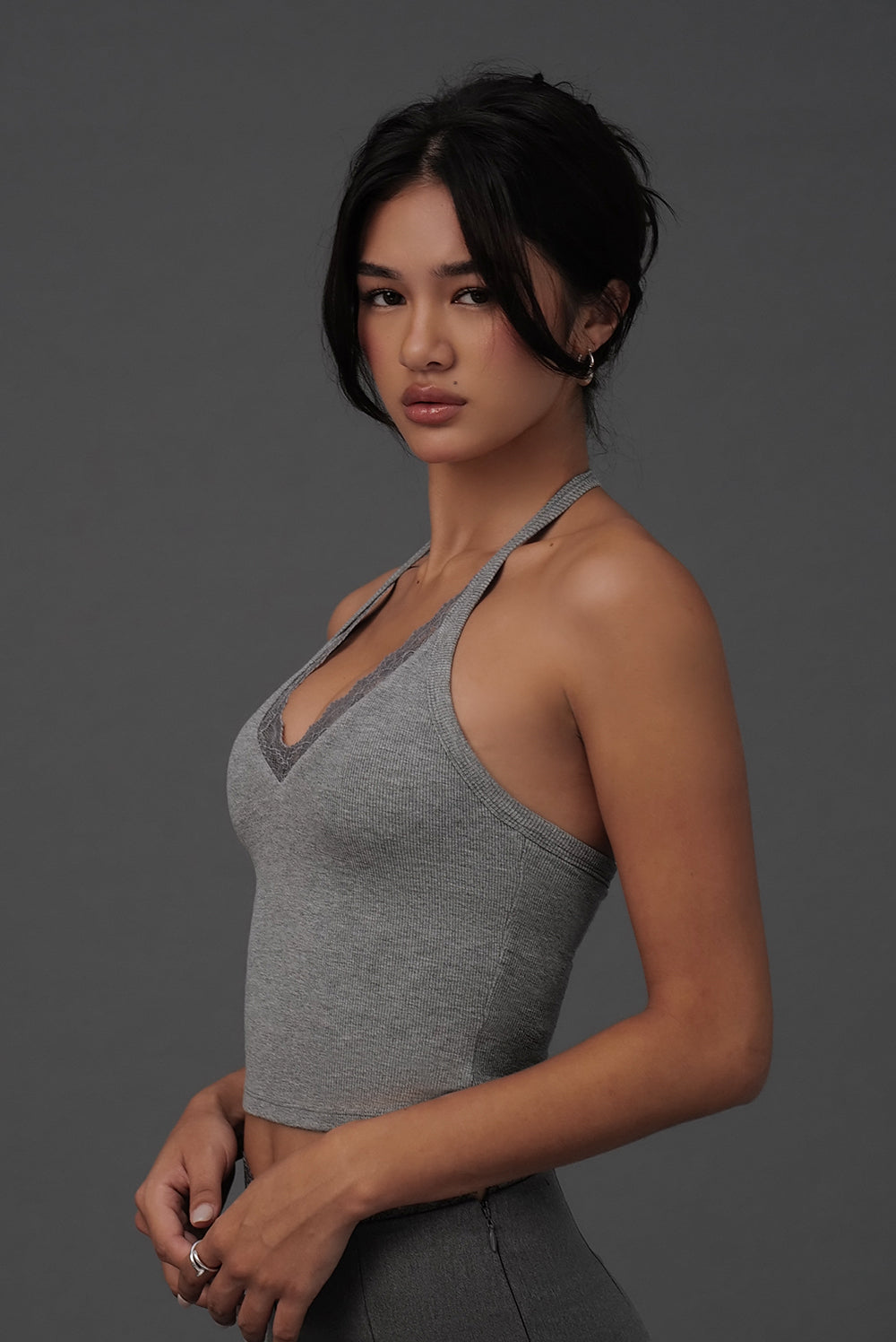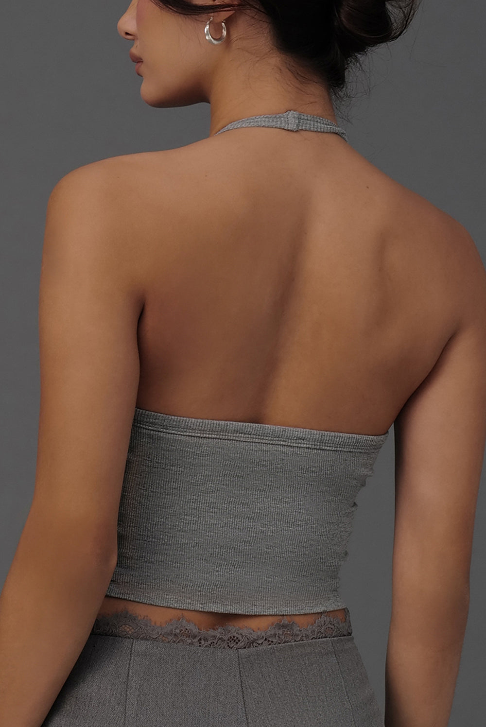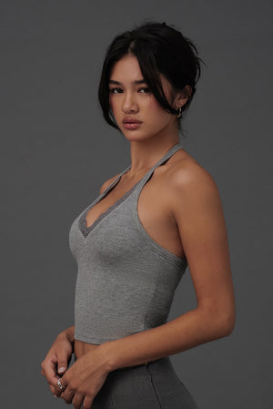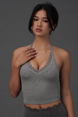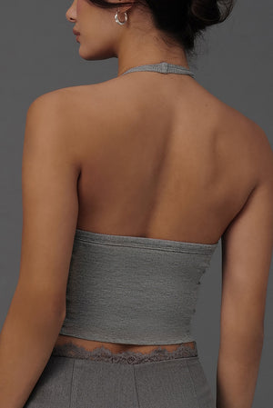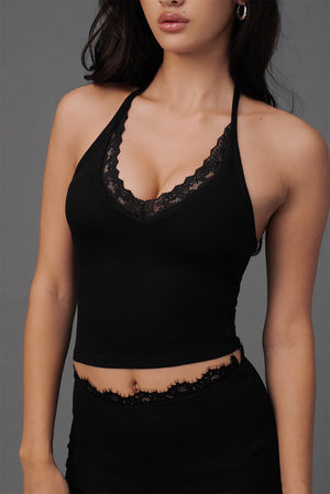 Elegant Rib Lace Trim Halter U-Neck Bratop