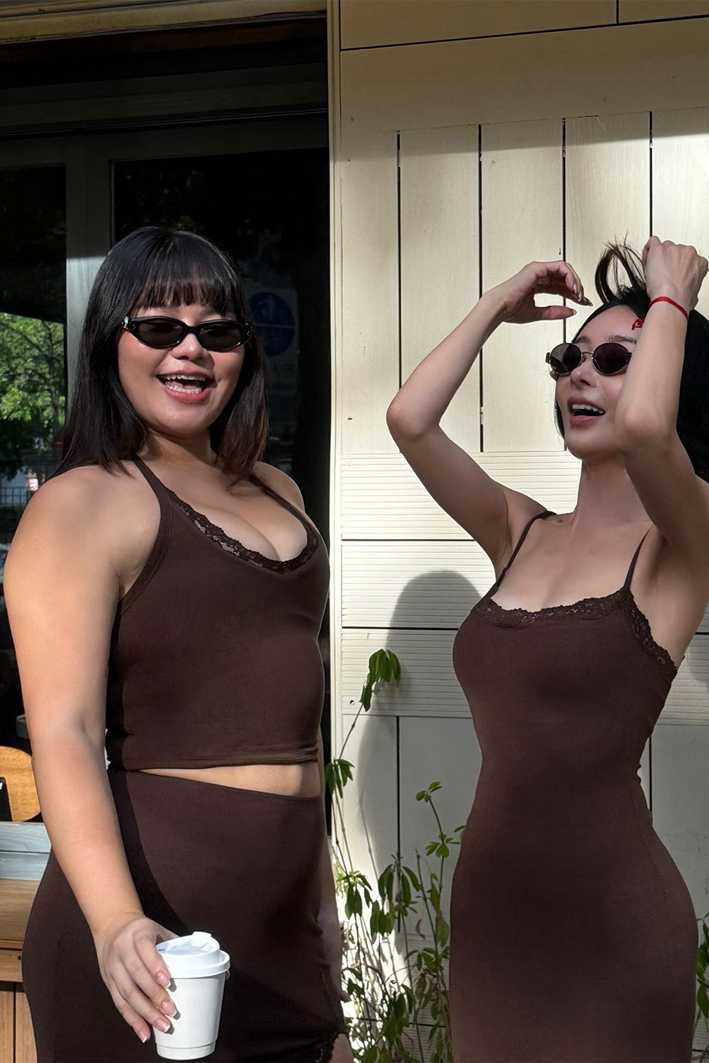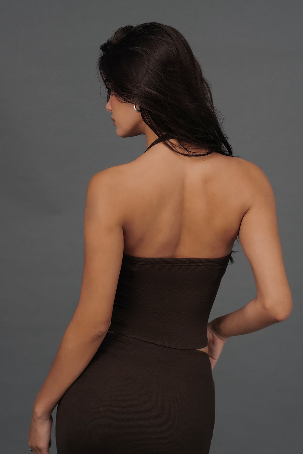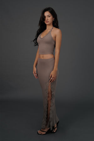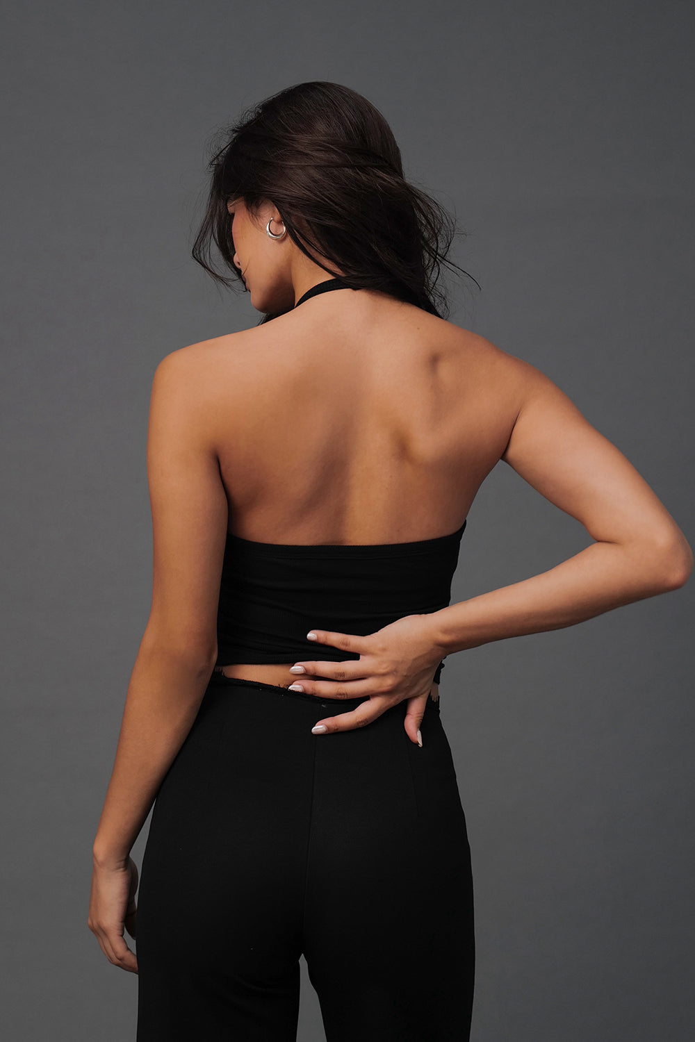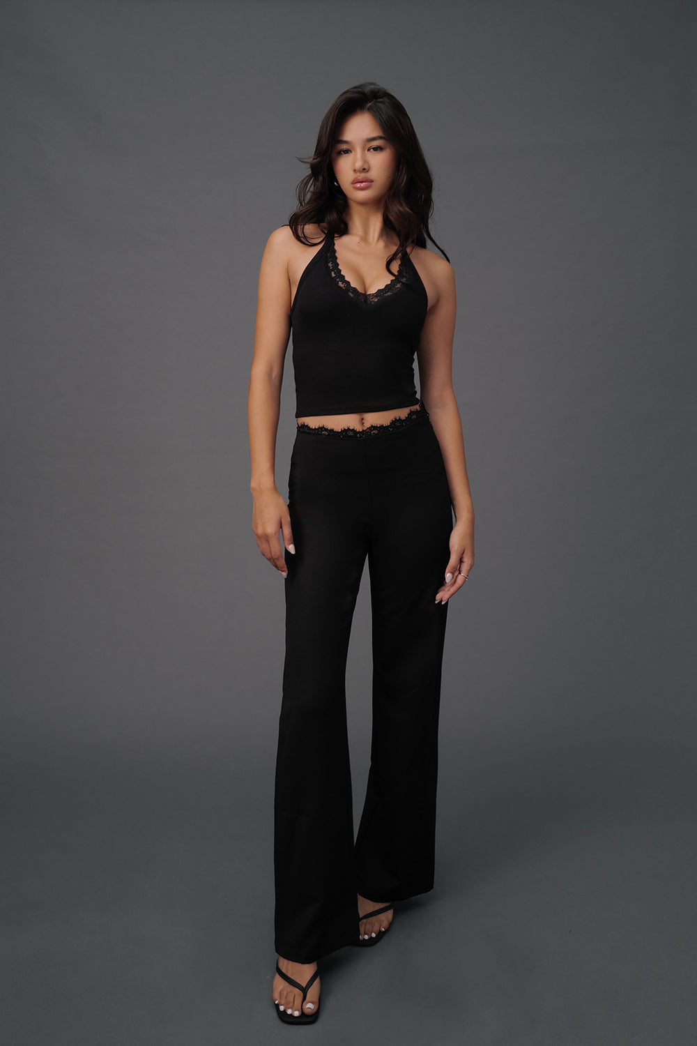 Elegant Rib Lace Trim Halter U-Neck Bratop