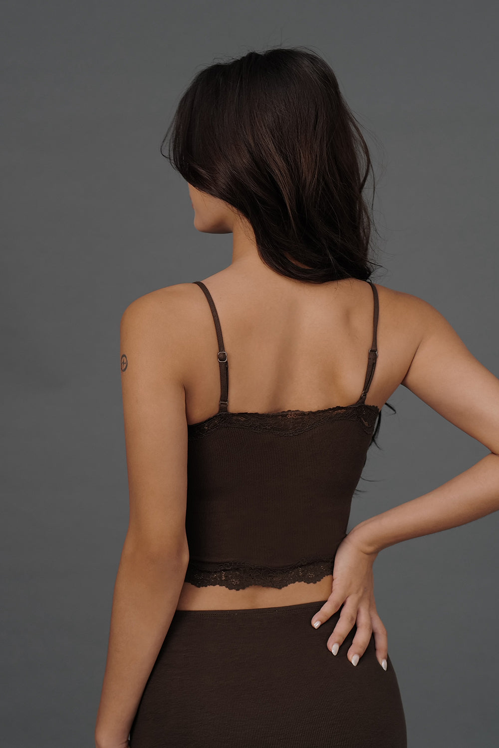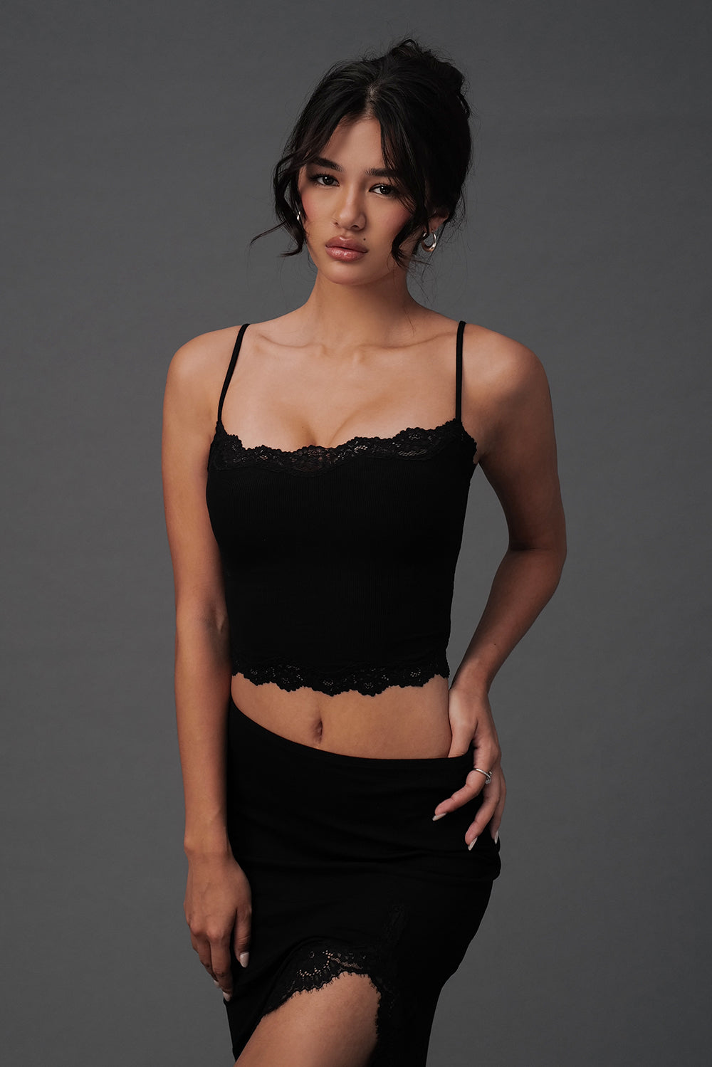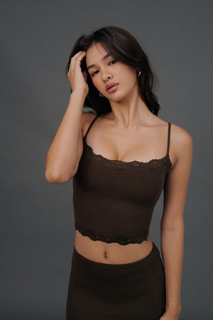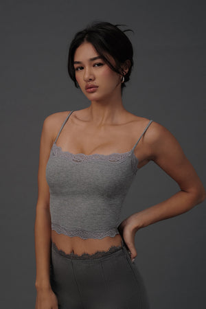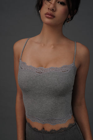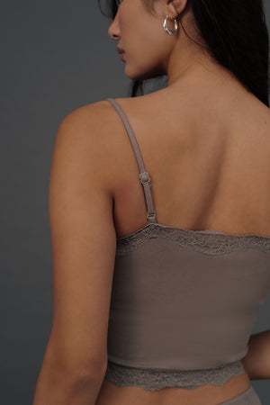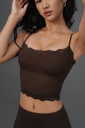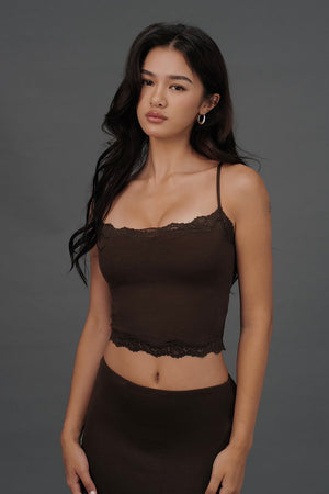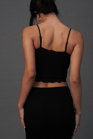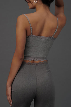 Elegant Rib Lace Trim Spaghetti Strap BraTop