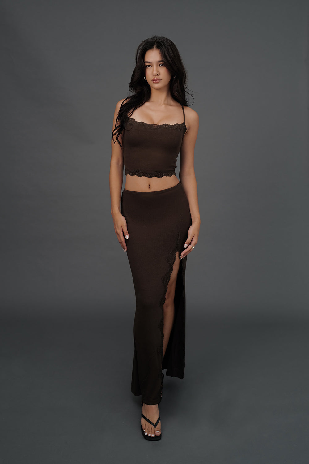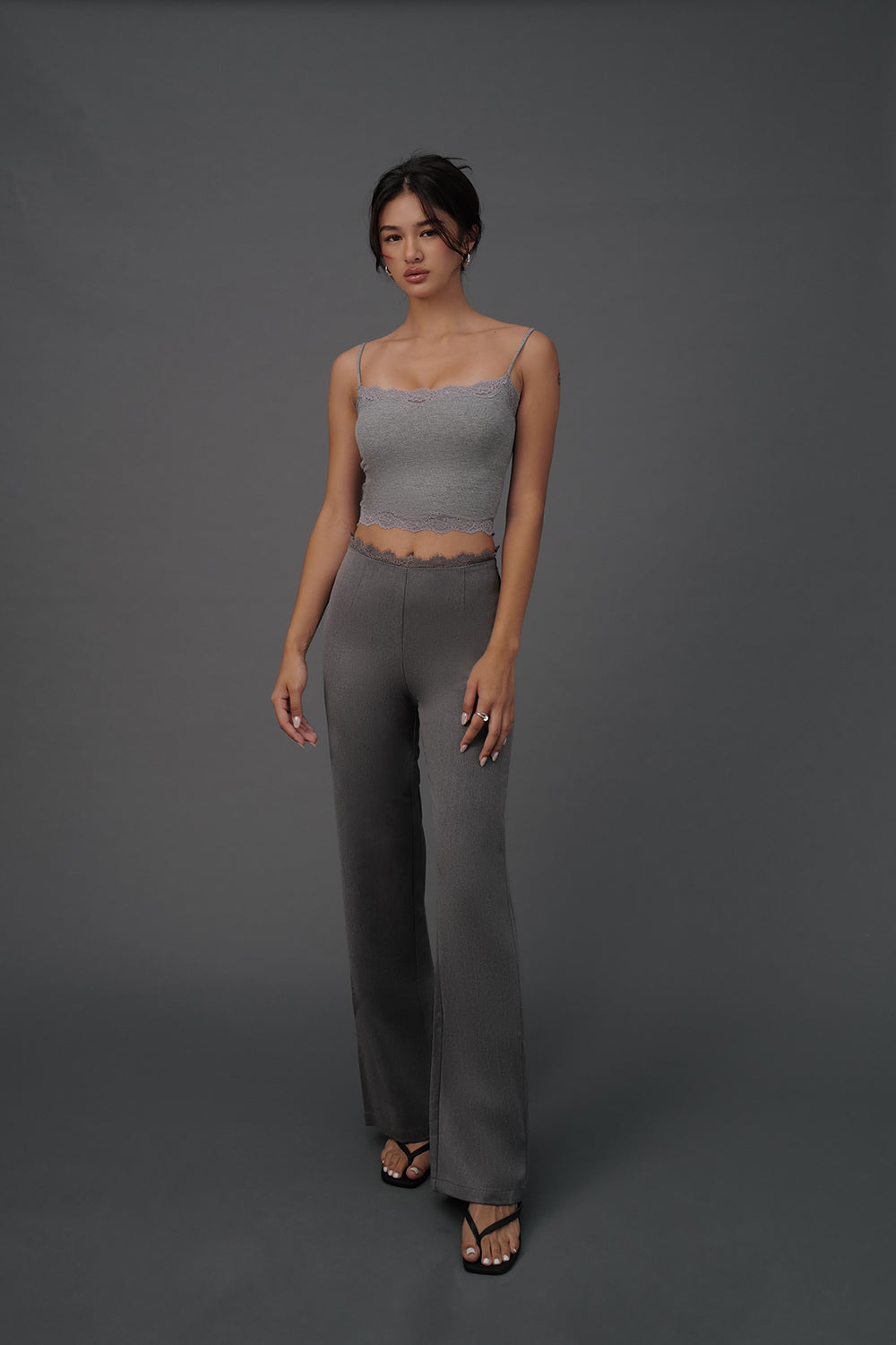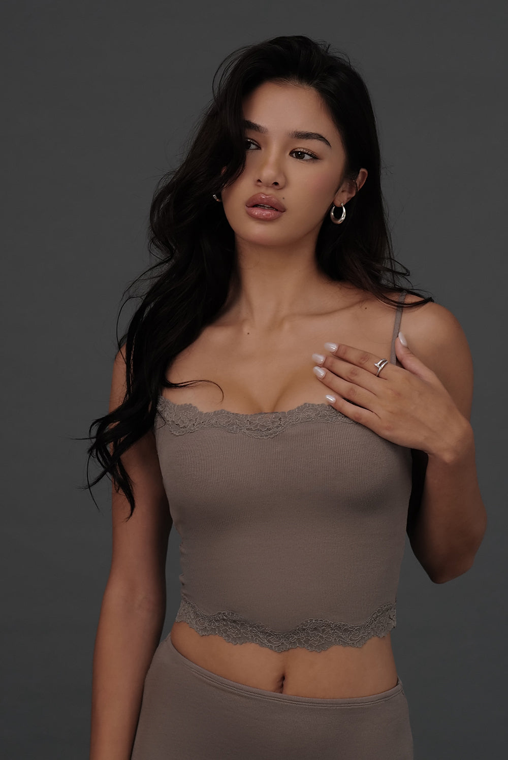 Elegant Rib Lace Trim Spaghetti Strap BraTop