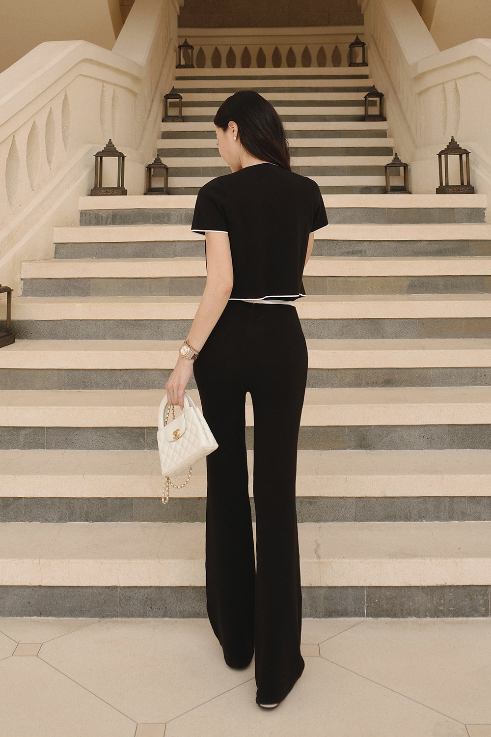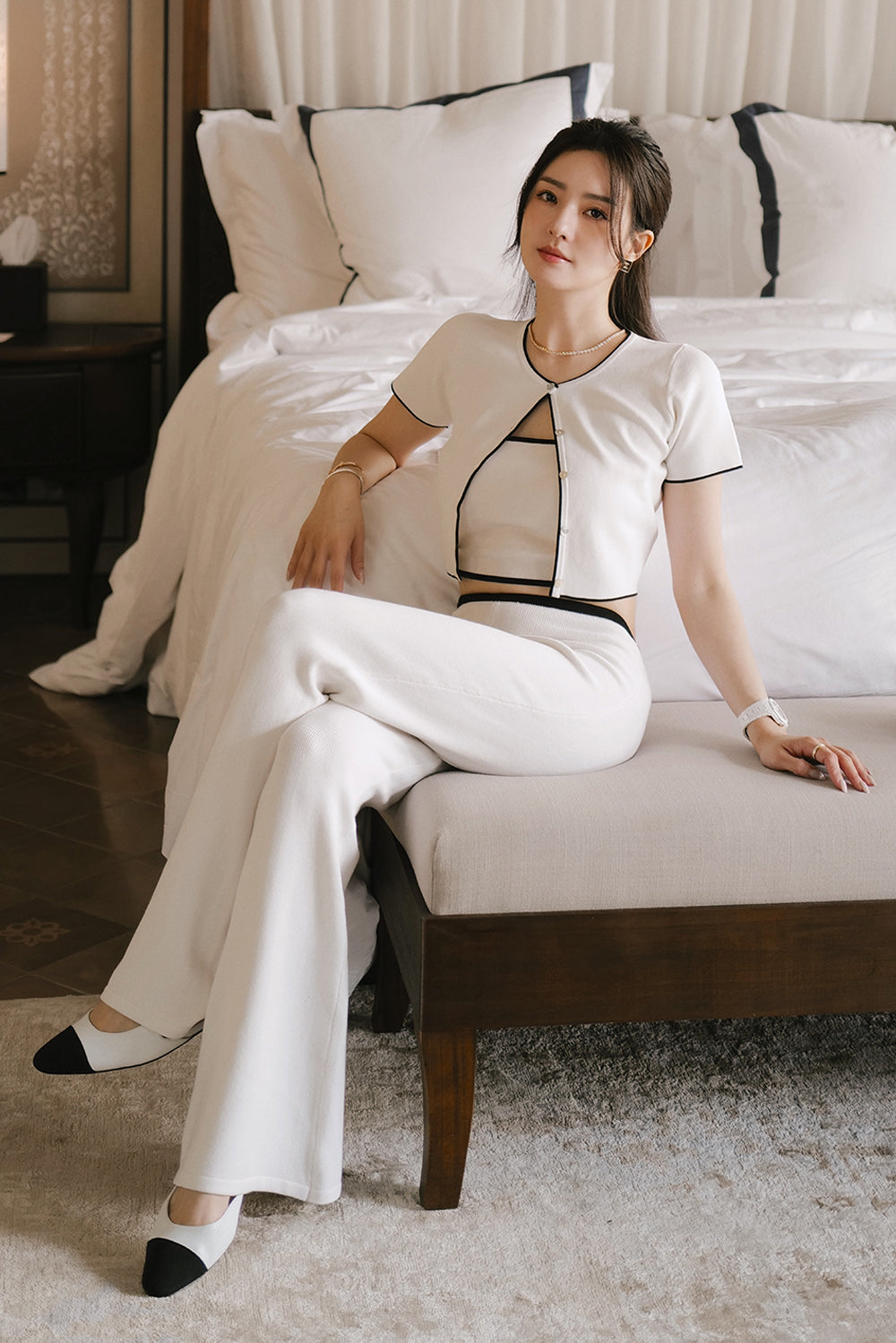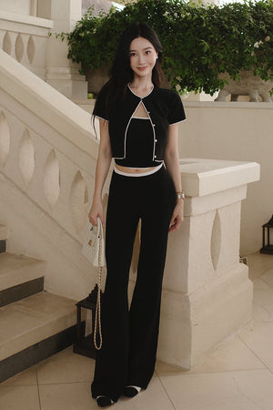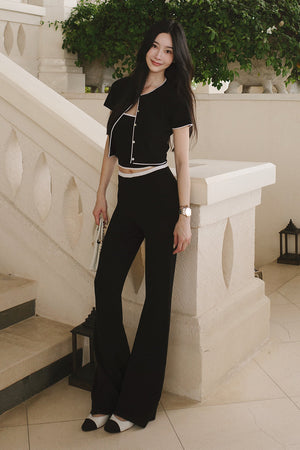 冰紗撞色滾邊長腿喇叭褲 Contrast Trim Knit Flare Pants
