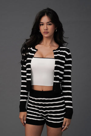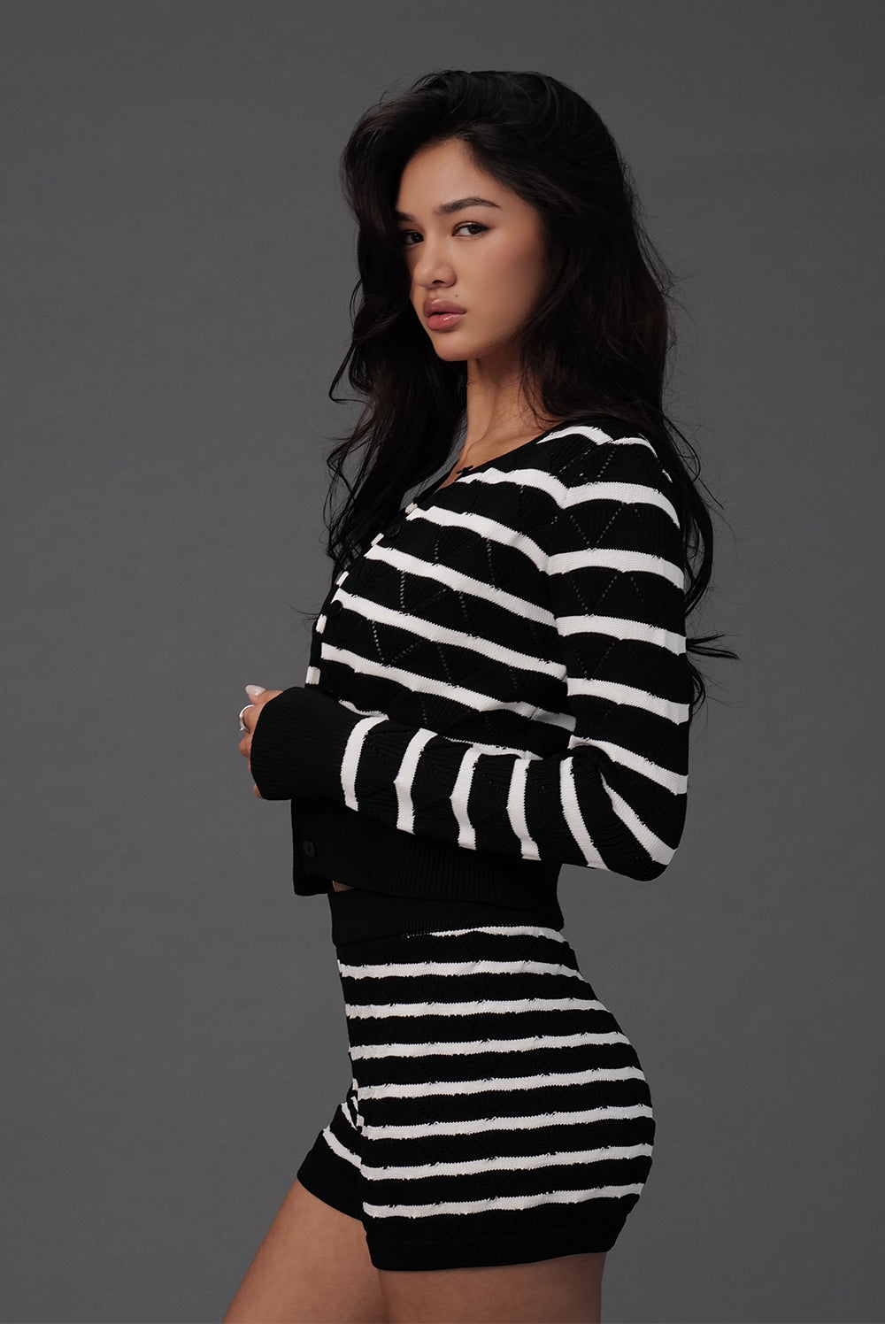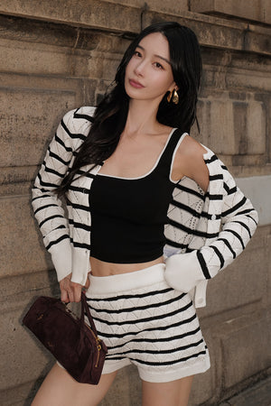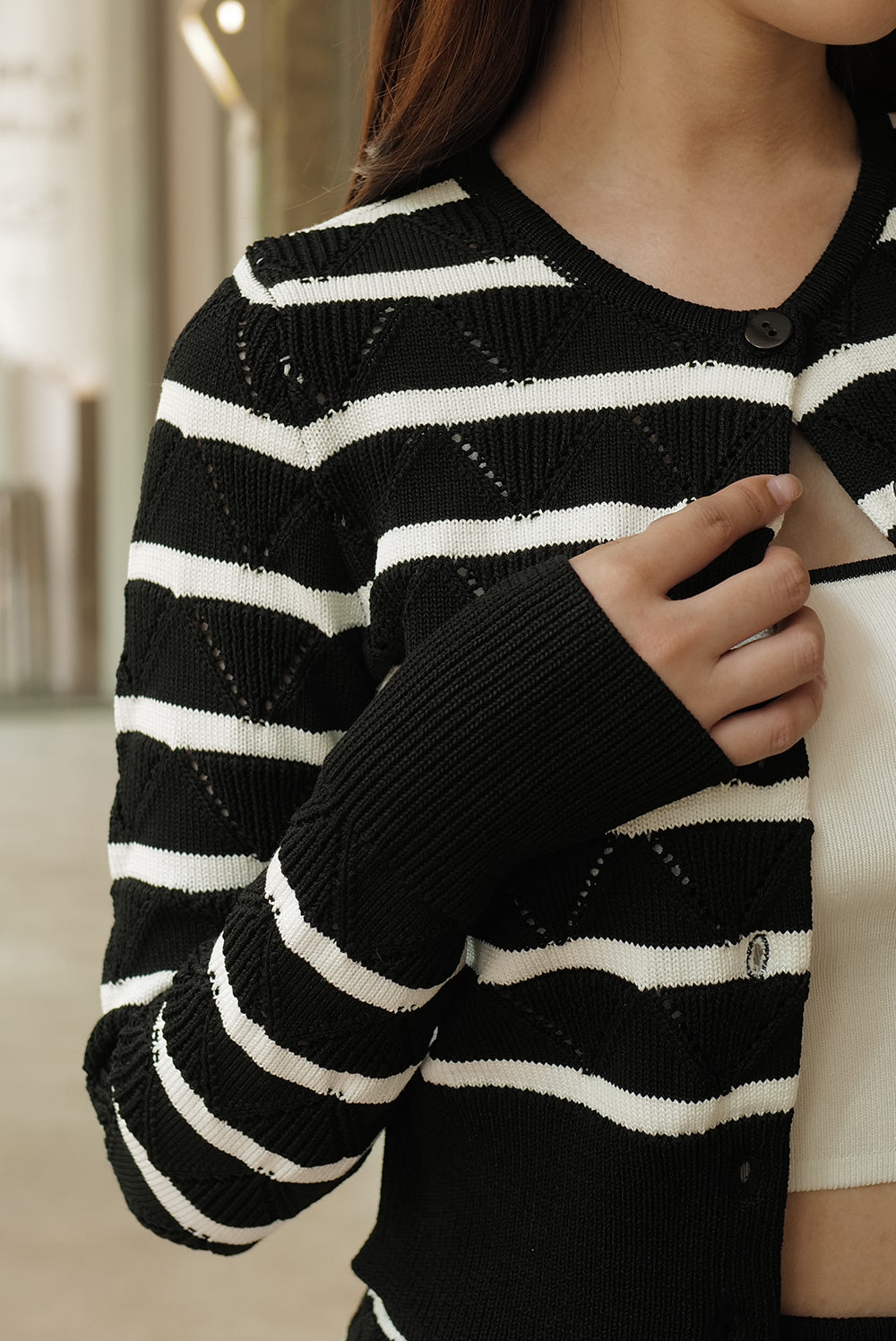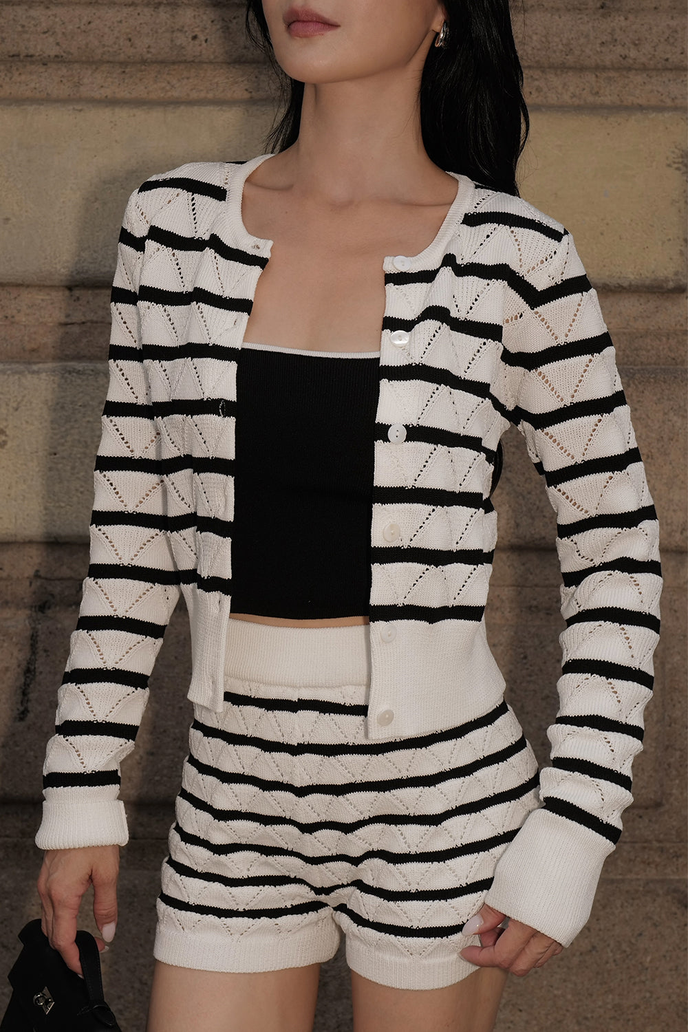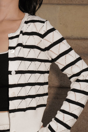 Ice Jacquard Striped Knit Button-Up Cardigan