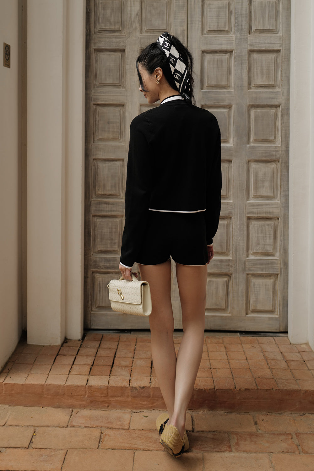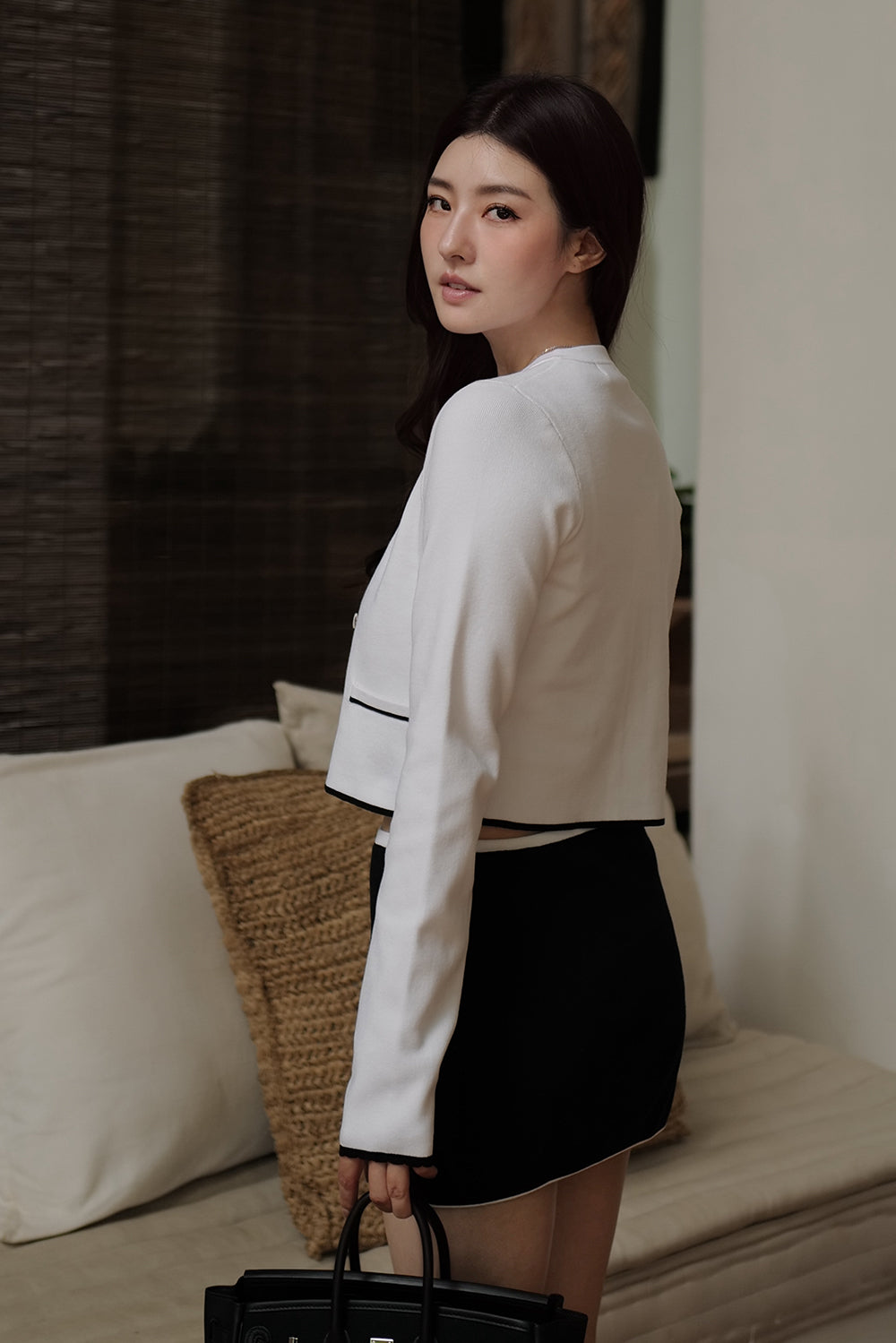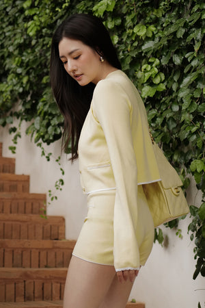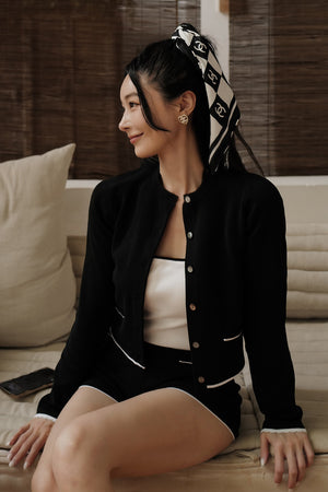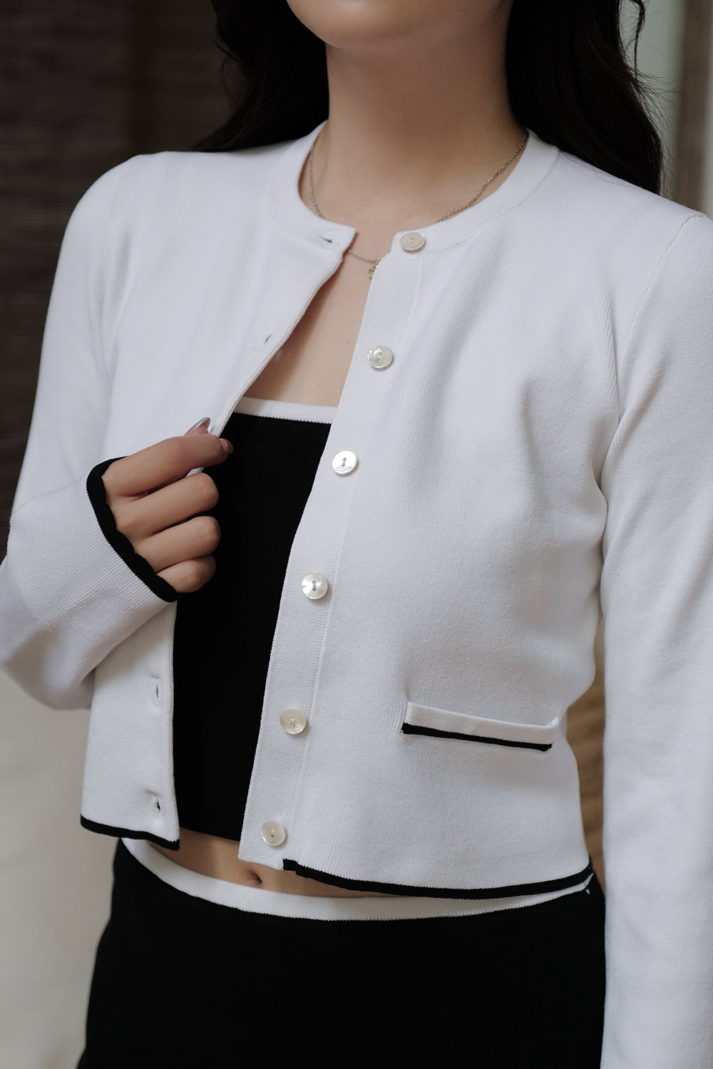 Ice Knit Contrast Trim Button-Up Jacket with Faux Pockets