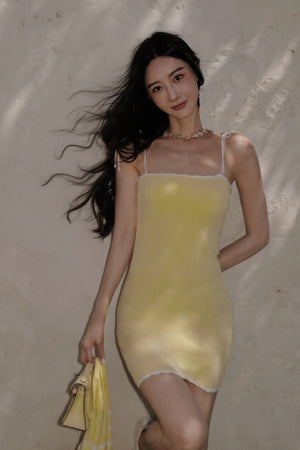 Ice Knit Contrast Trim Tie-Strap Mini Bra Dress