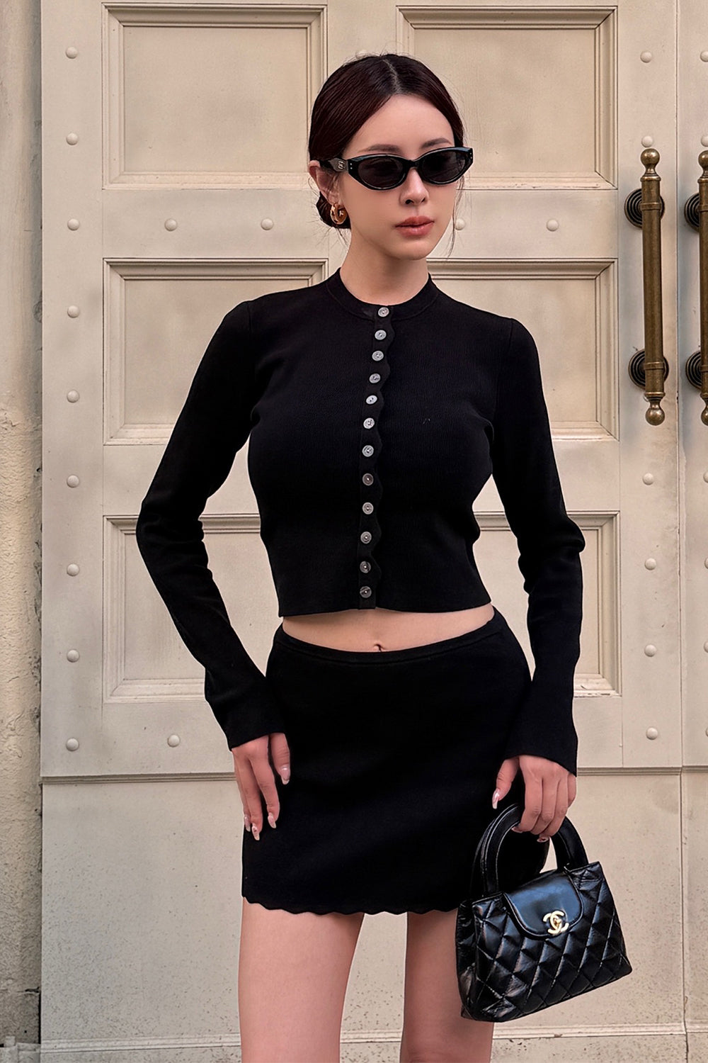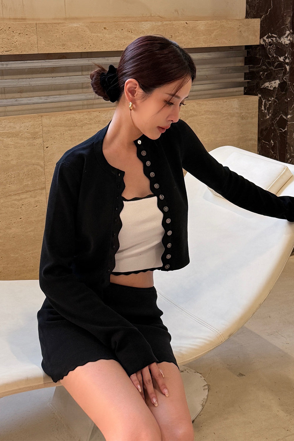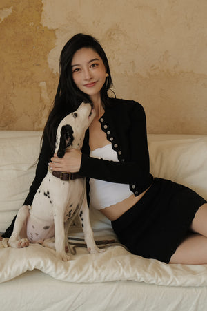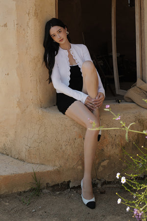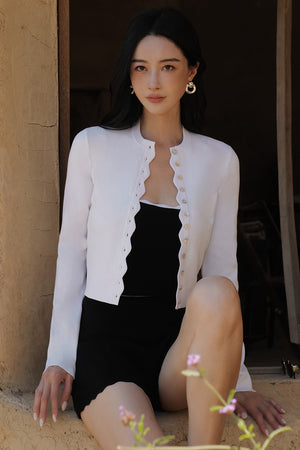 Ice Knit Trim Ribbed Button-Up Cardigan