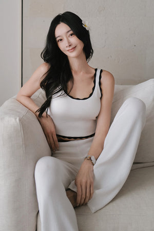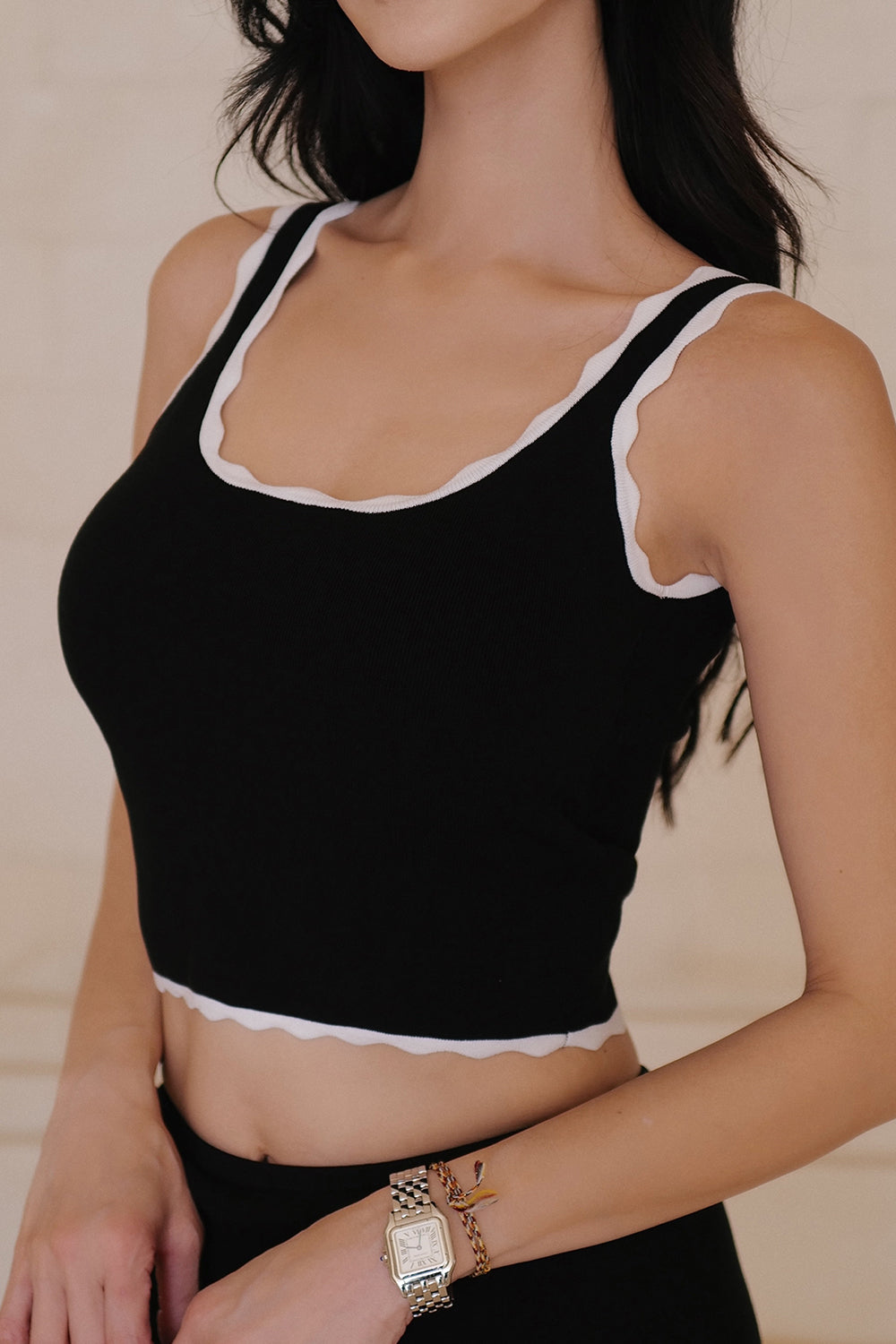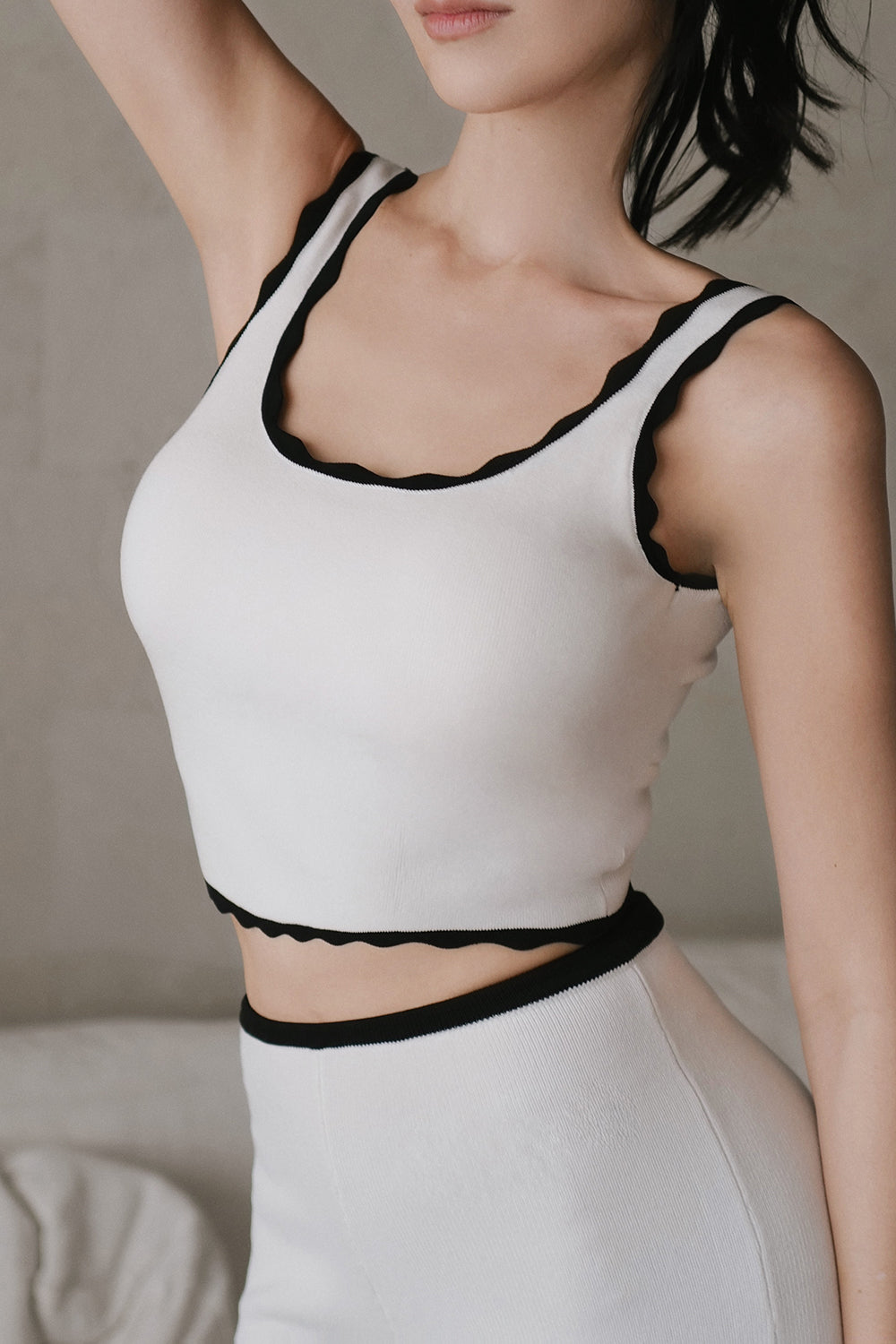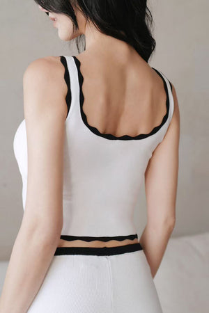 Ripple Trim Knit U-Neck Wide-Strap BraTop