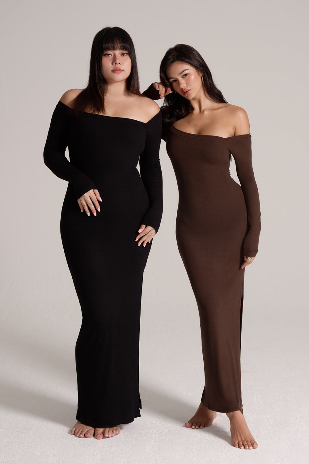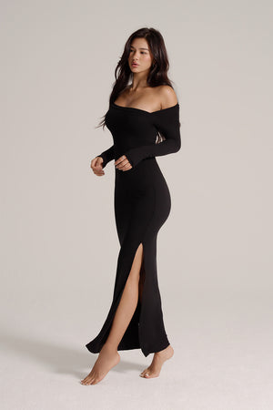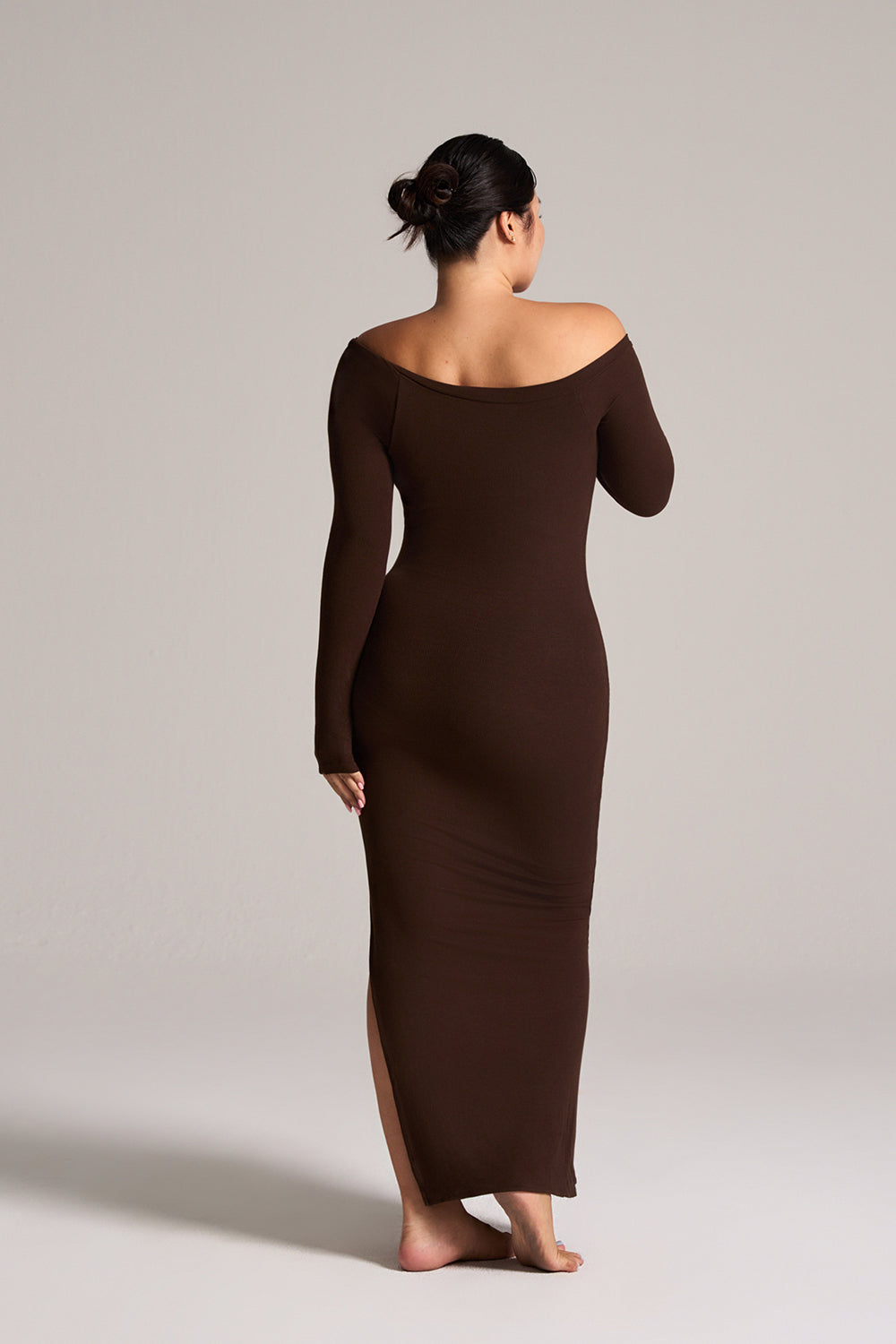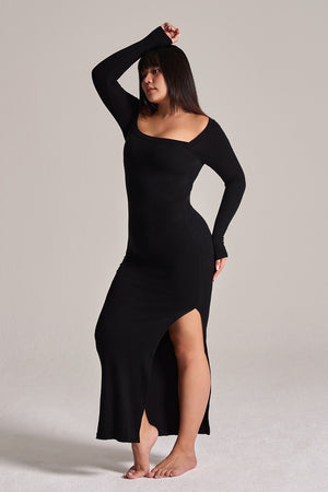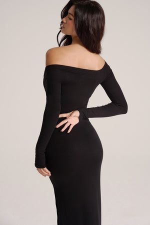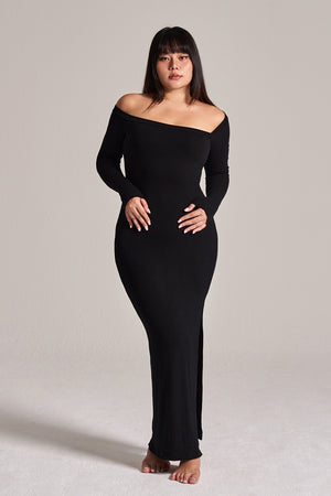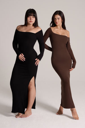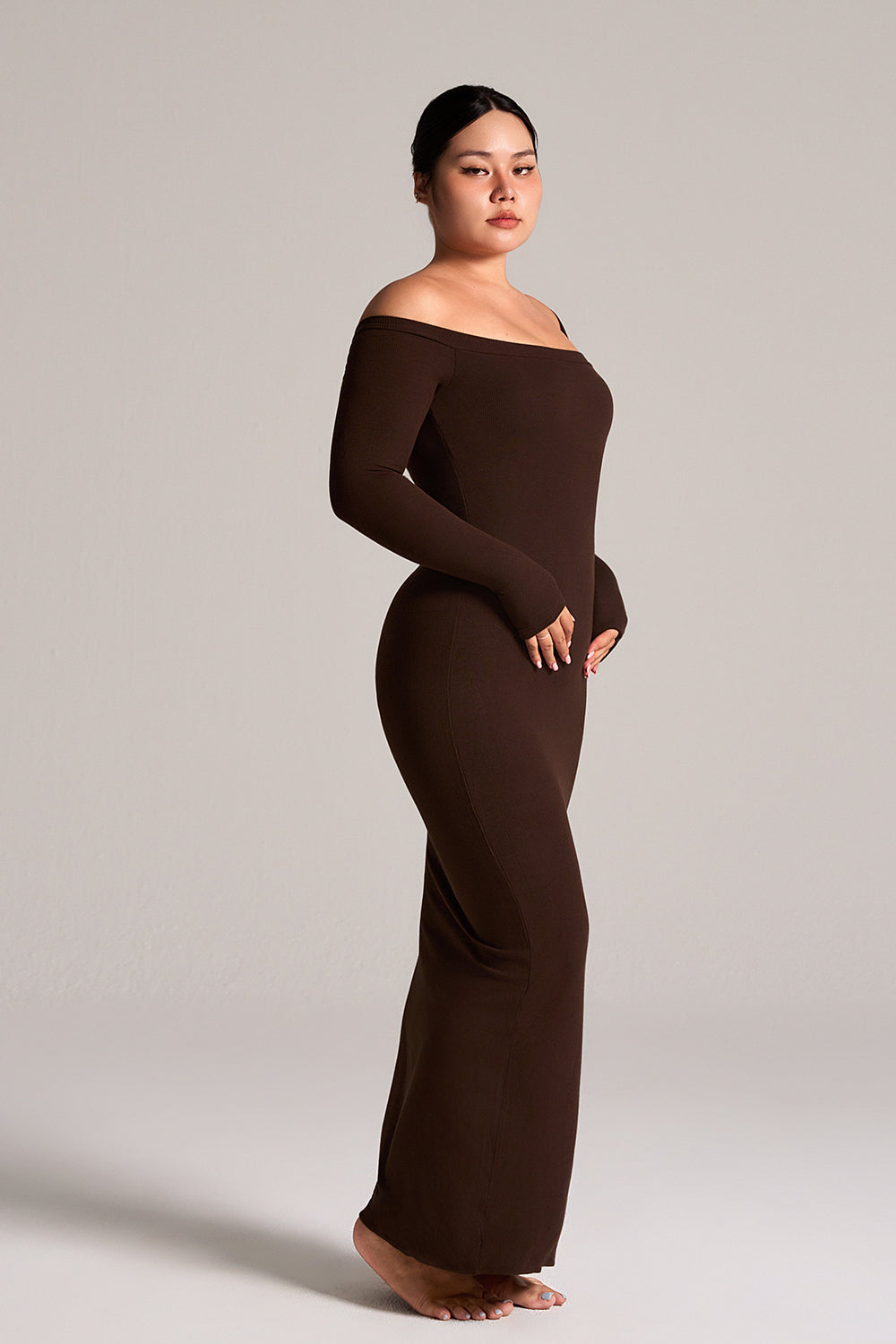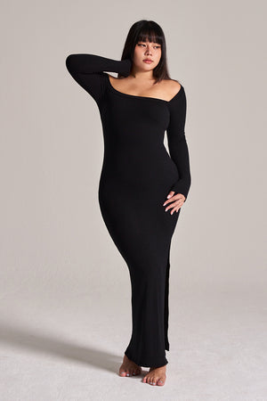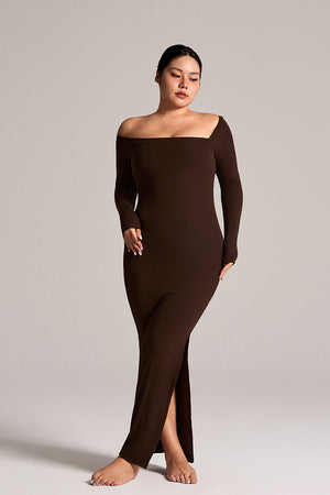 Elegant Rib Asymmetric One-Shoulder Long Sleeve Bra Dress