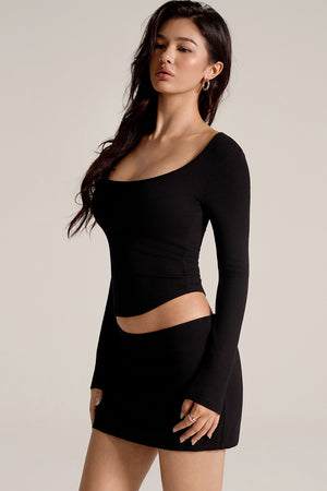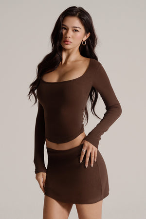 Home New Arrival Elegant Rib U-Neck Long Sleeve BraTop