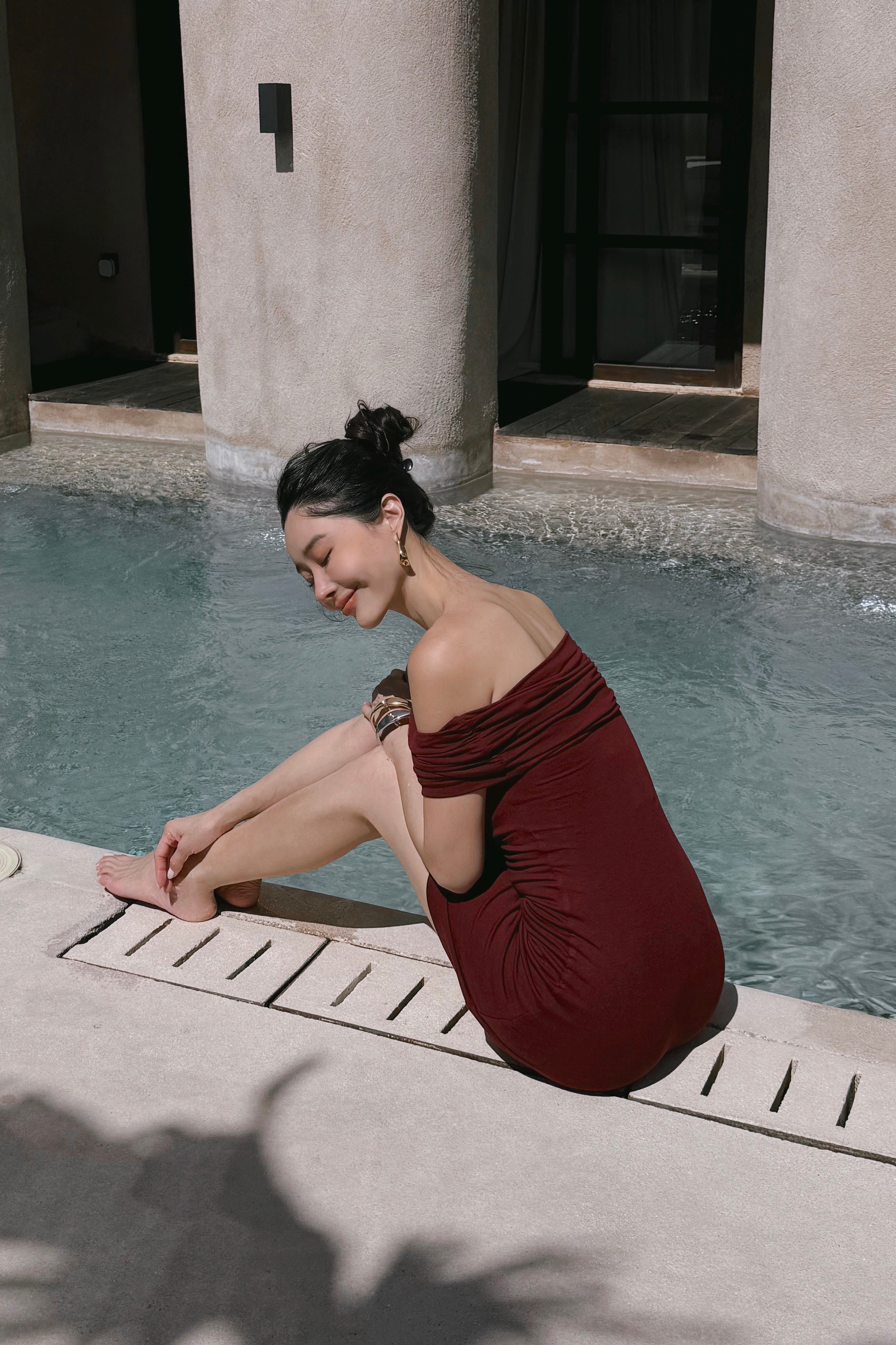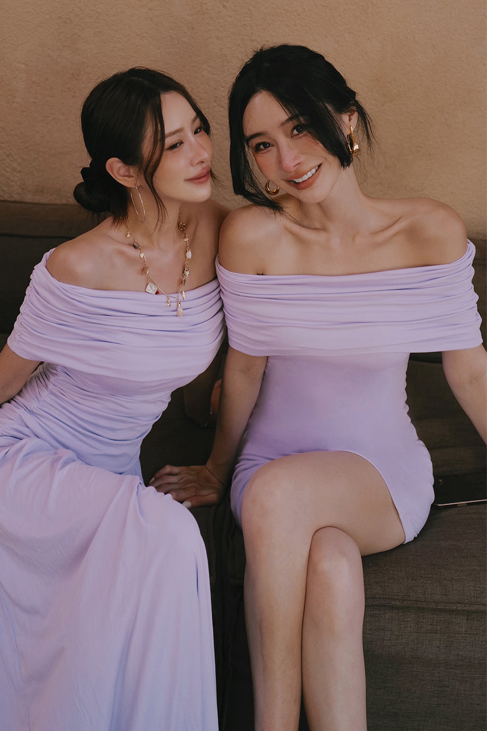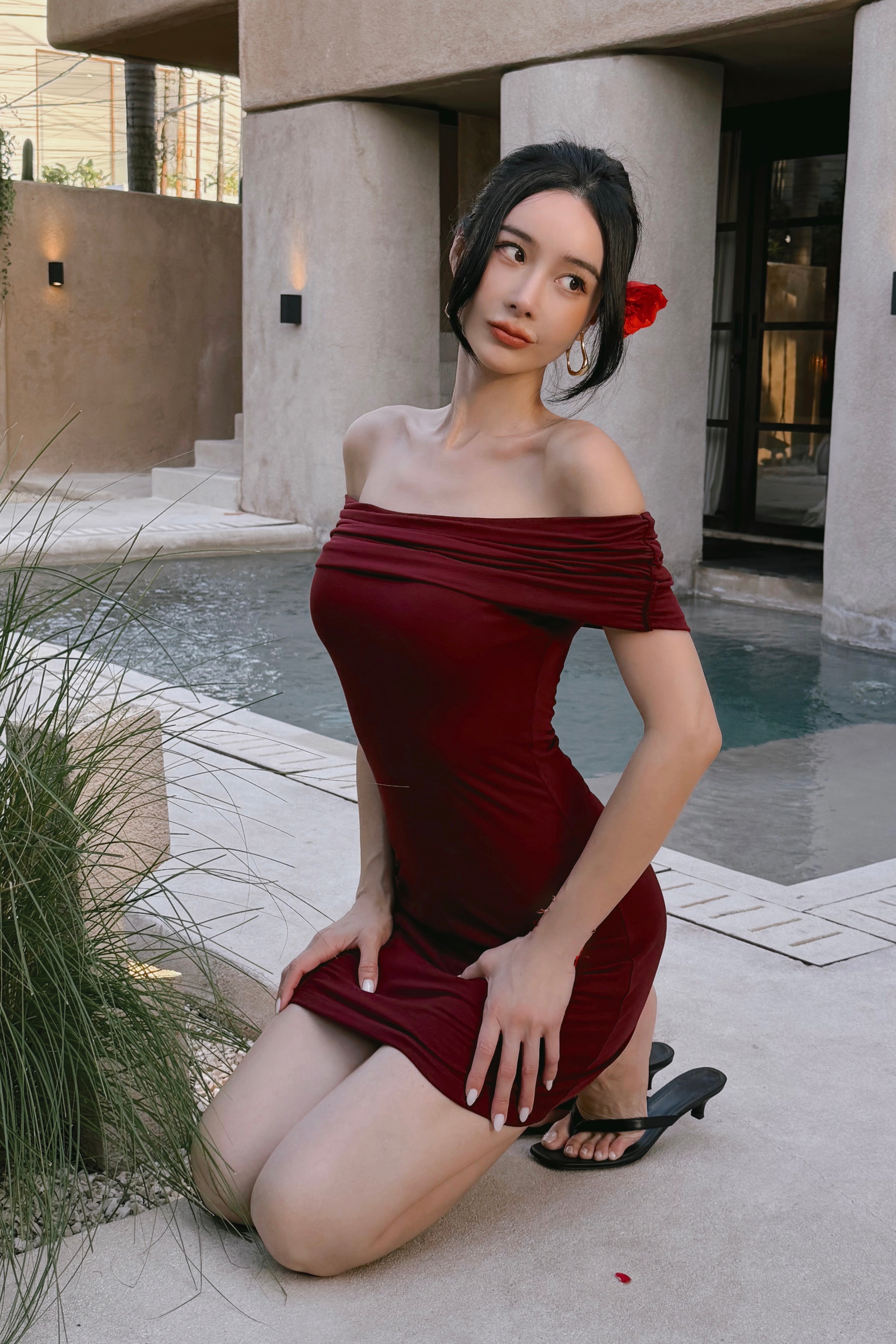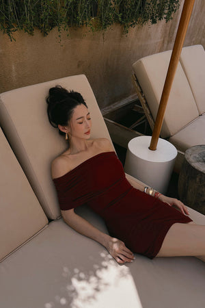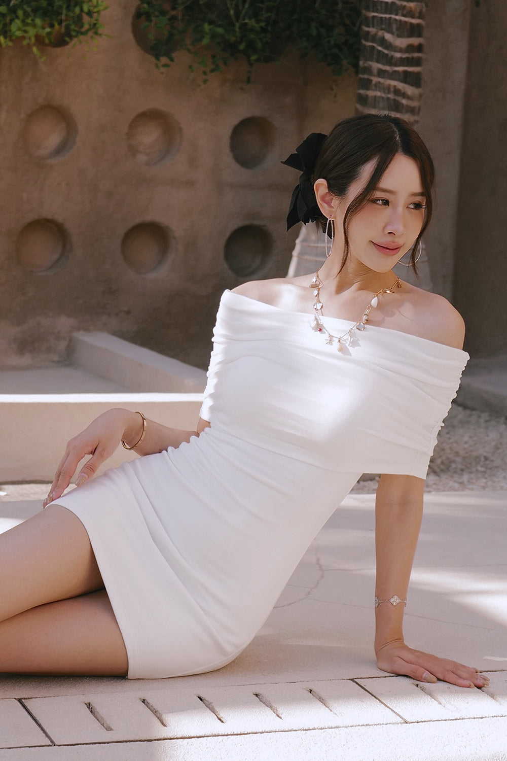 舒芙蕾短袖一字領襯墊短洋裝 Soft-Strech Off-Shoulder Short Sleeve Mini Bra Dress