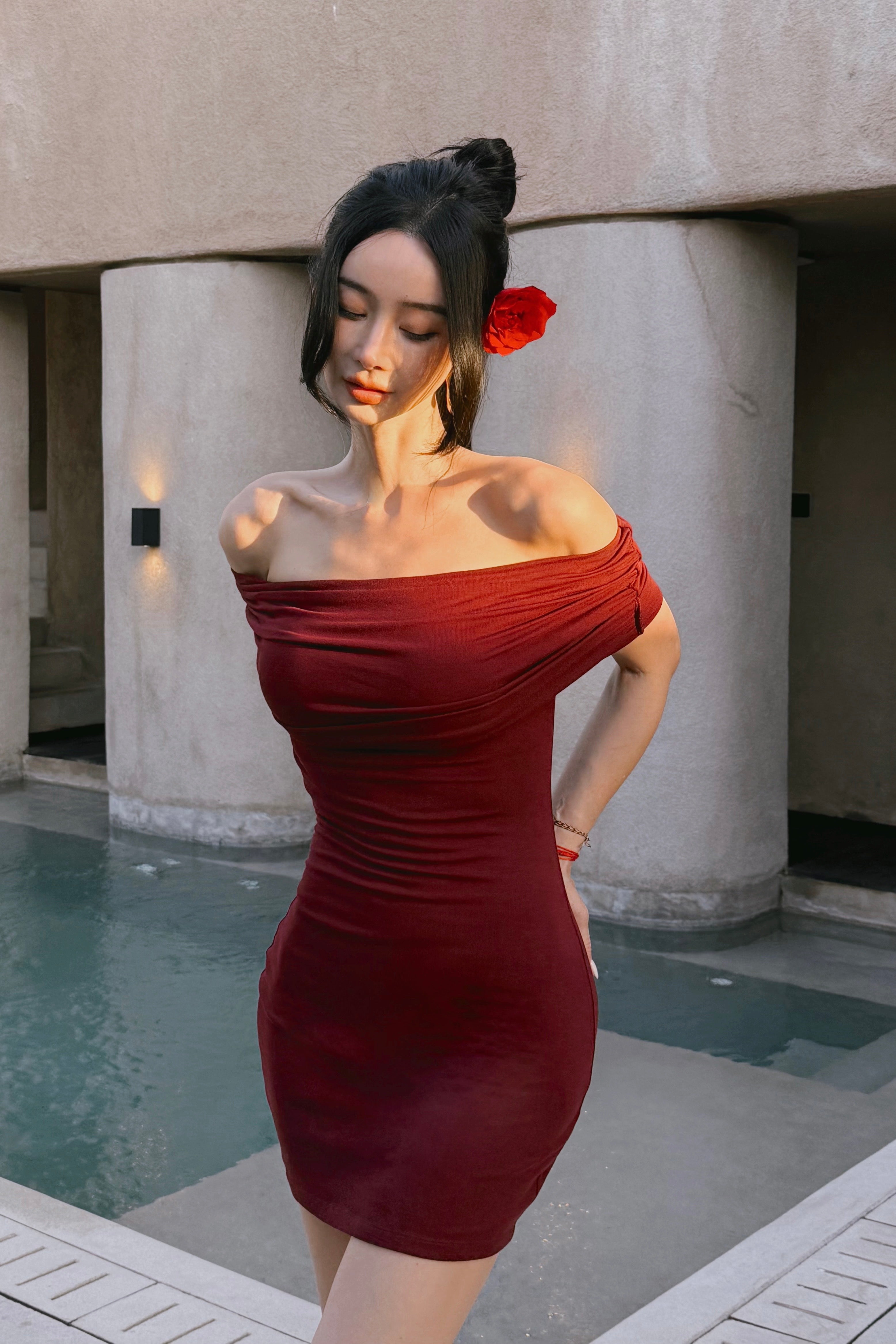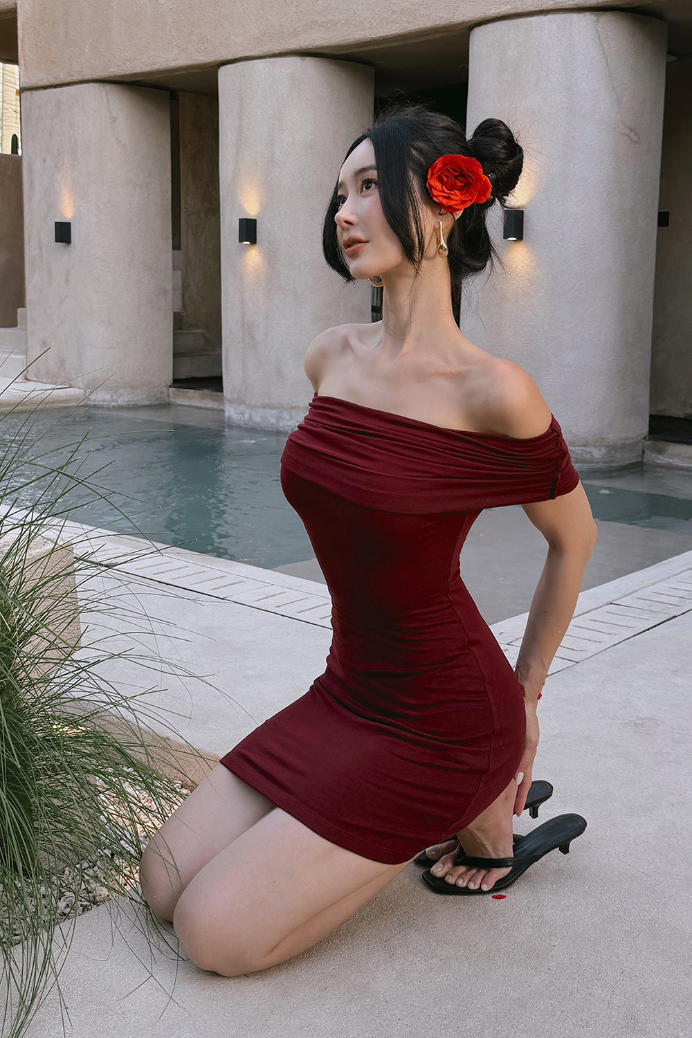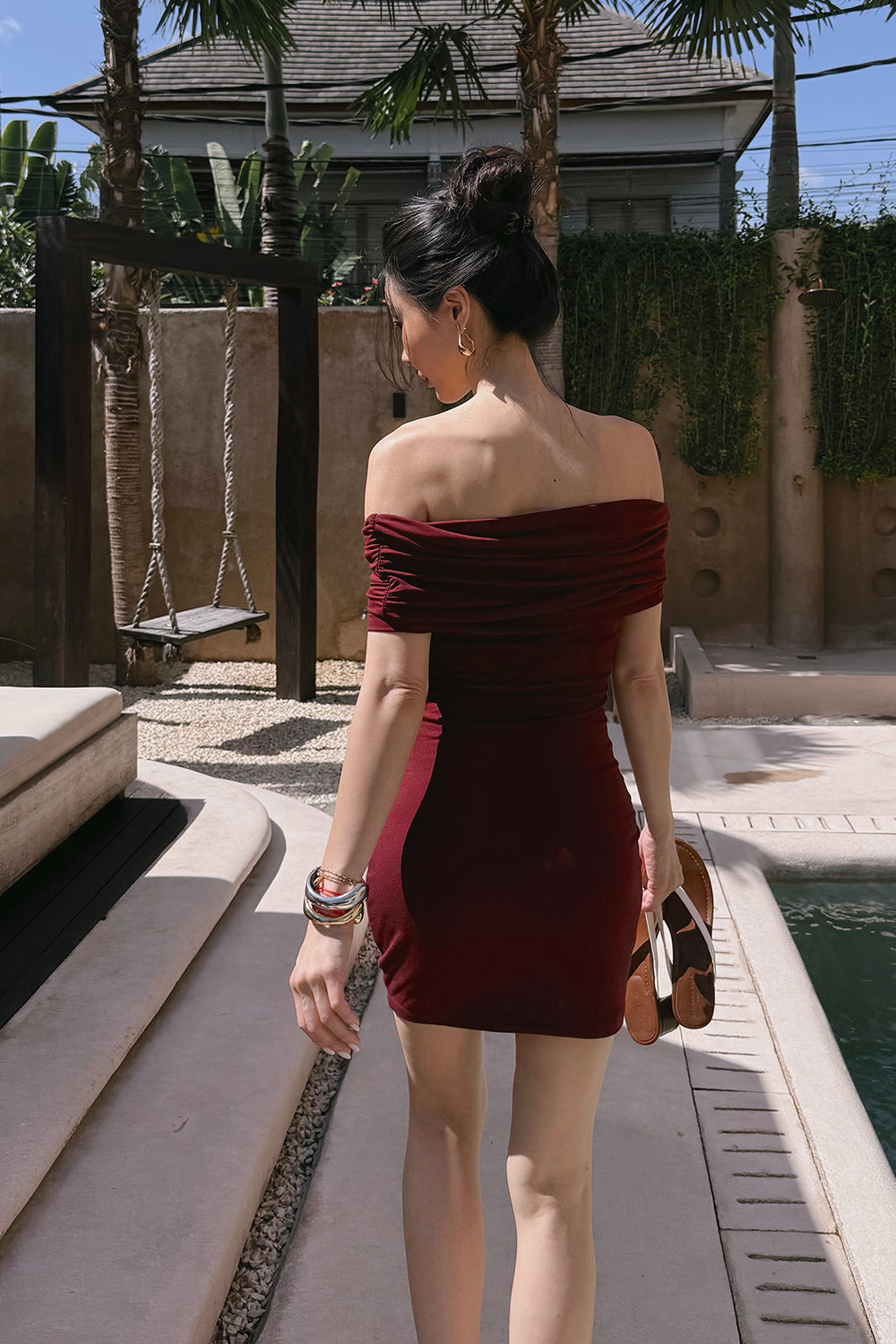 Soft Stretch Off-Shoulder Short Sleeve Mini Bra Dress
