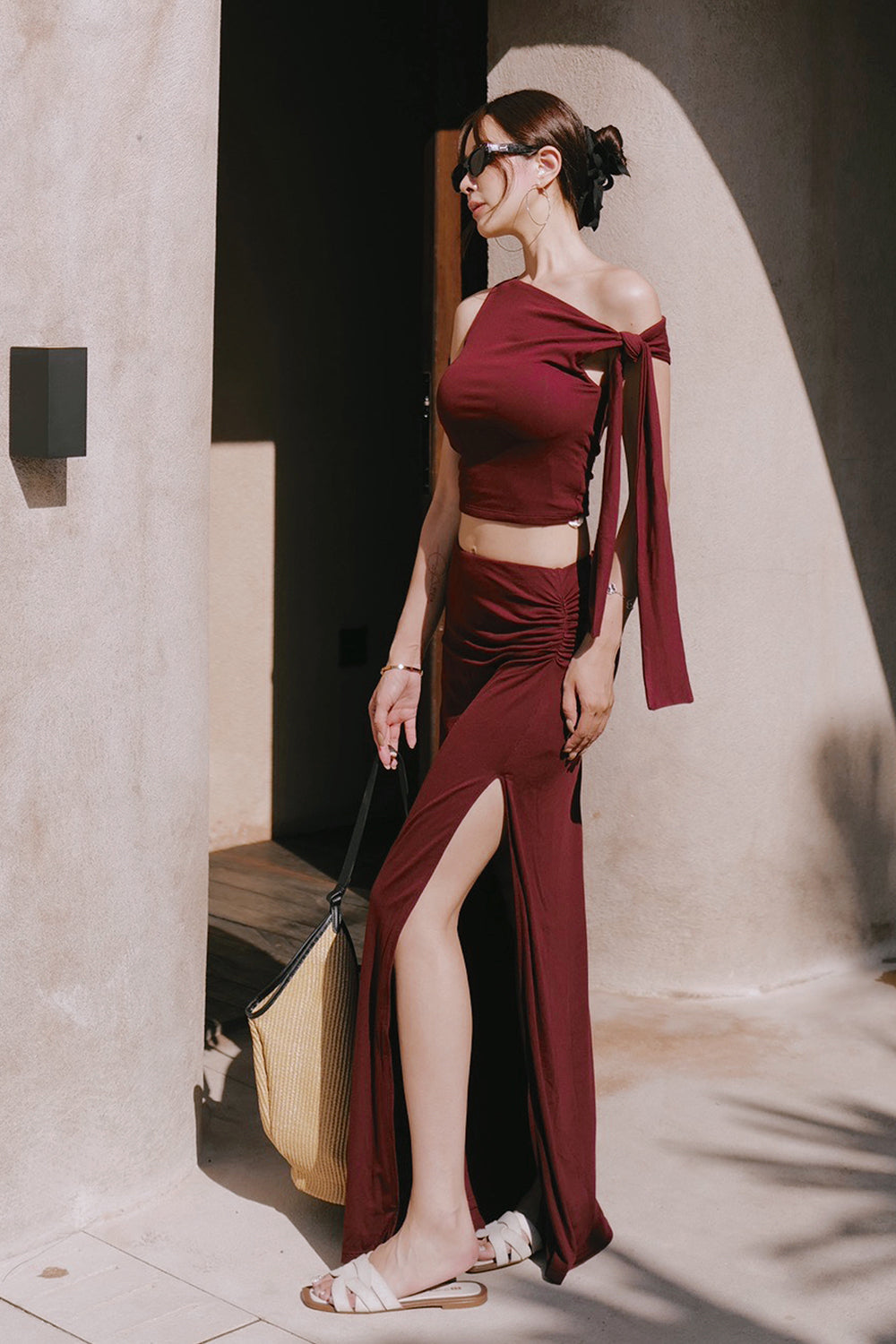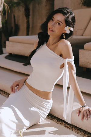 Soft Stretch One-Shoulder Tie Strap BraTop