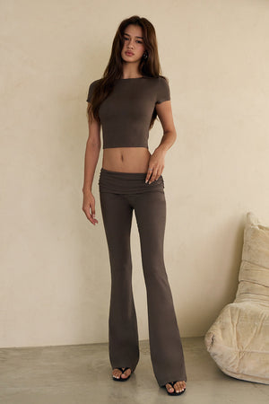 舒芙蕾翻腰修身長腿褲