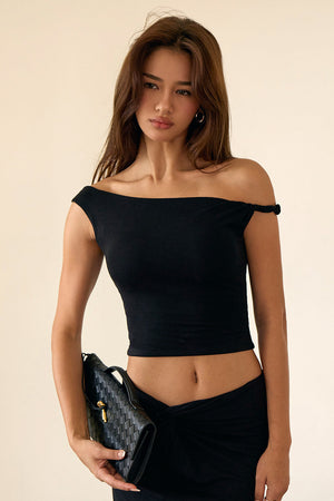 舒芙蕾扭結斜肩BraTop Soft Stretch Wide Strap Twist BraTop