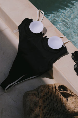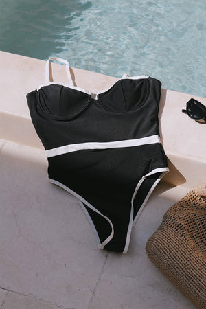 撞色滾邊連身泳衣 Island Reverie Black Contrast Trim Swimsuit