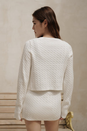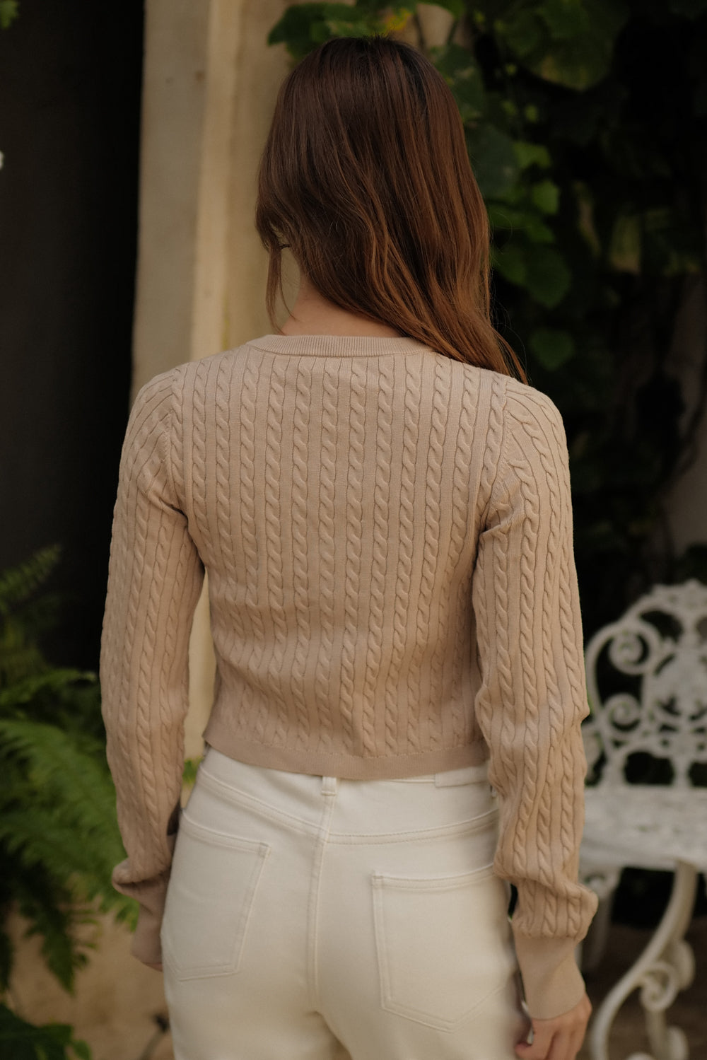 Home Top Afternoon Walk Cable Knit V-Neck Button-Front Cardigan