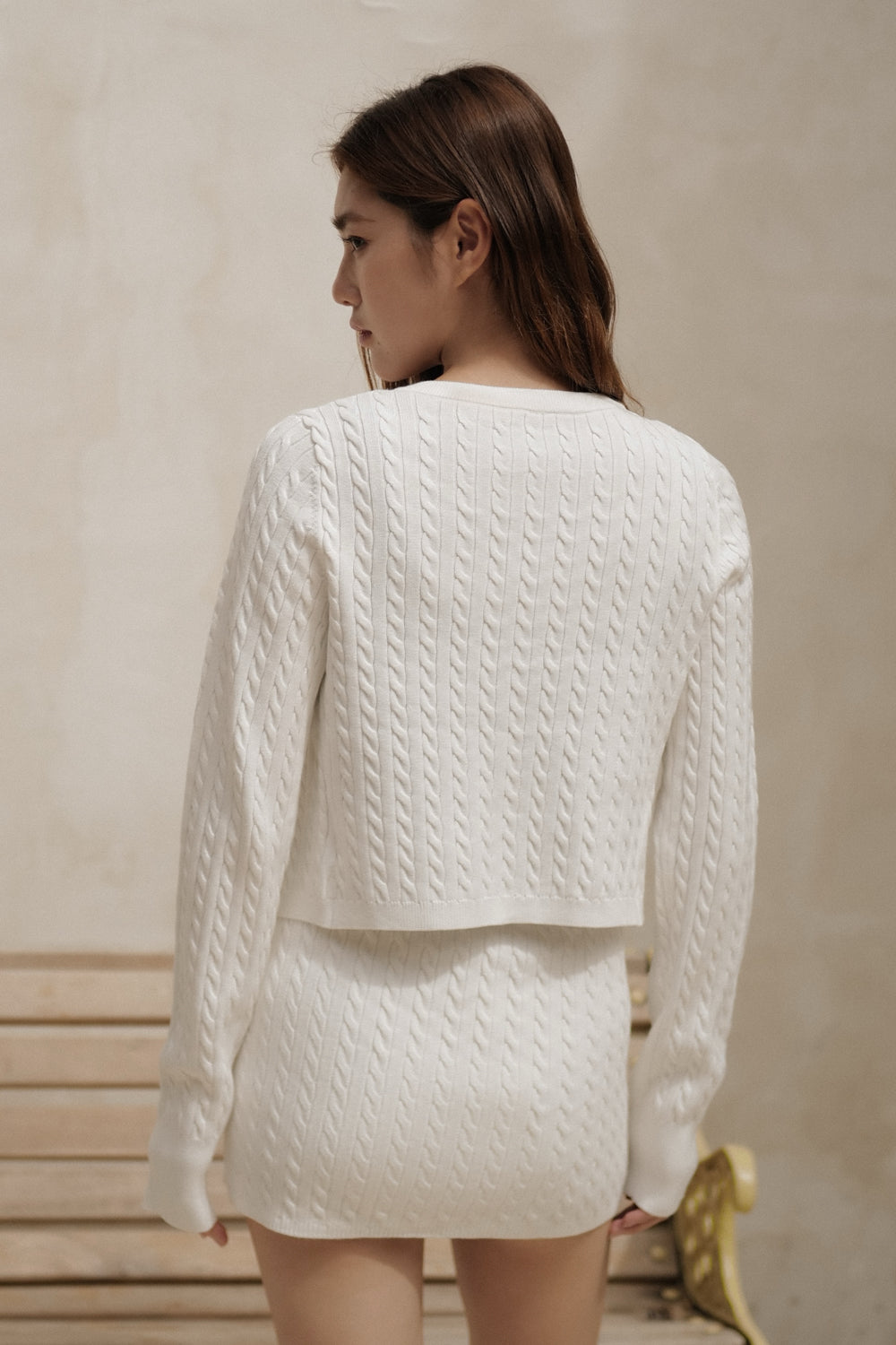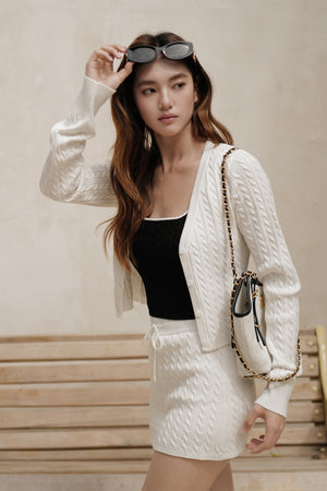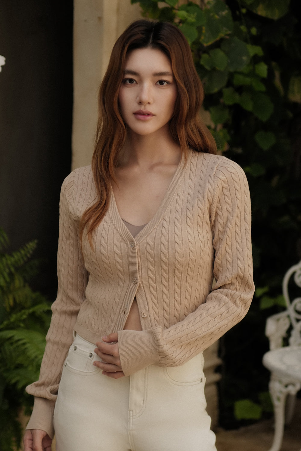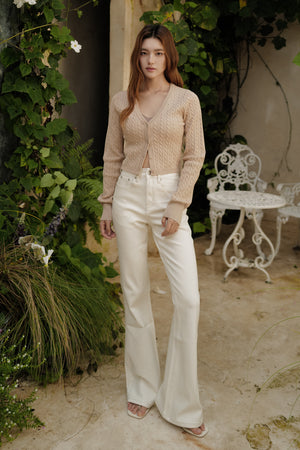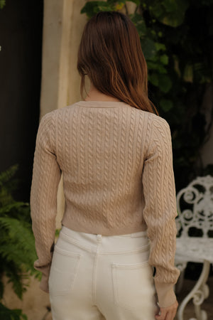Afternoon Walk Cable Knit V-Neck Button-Front Cardigan