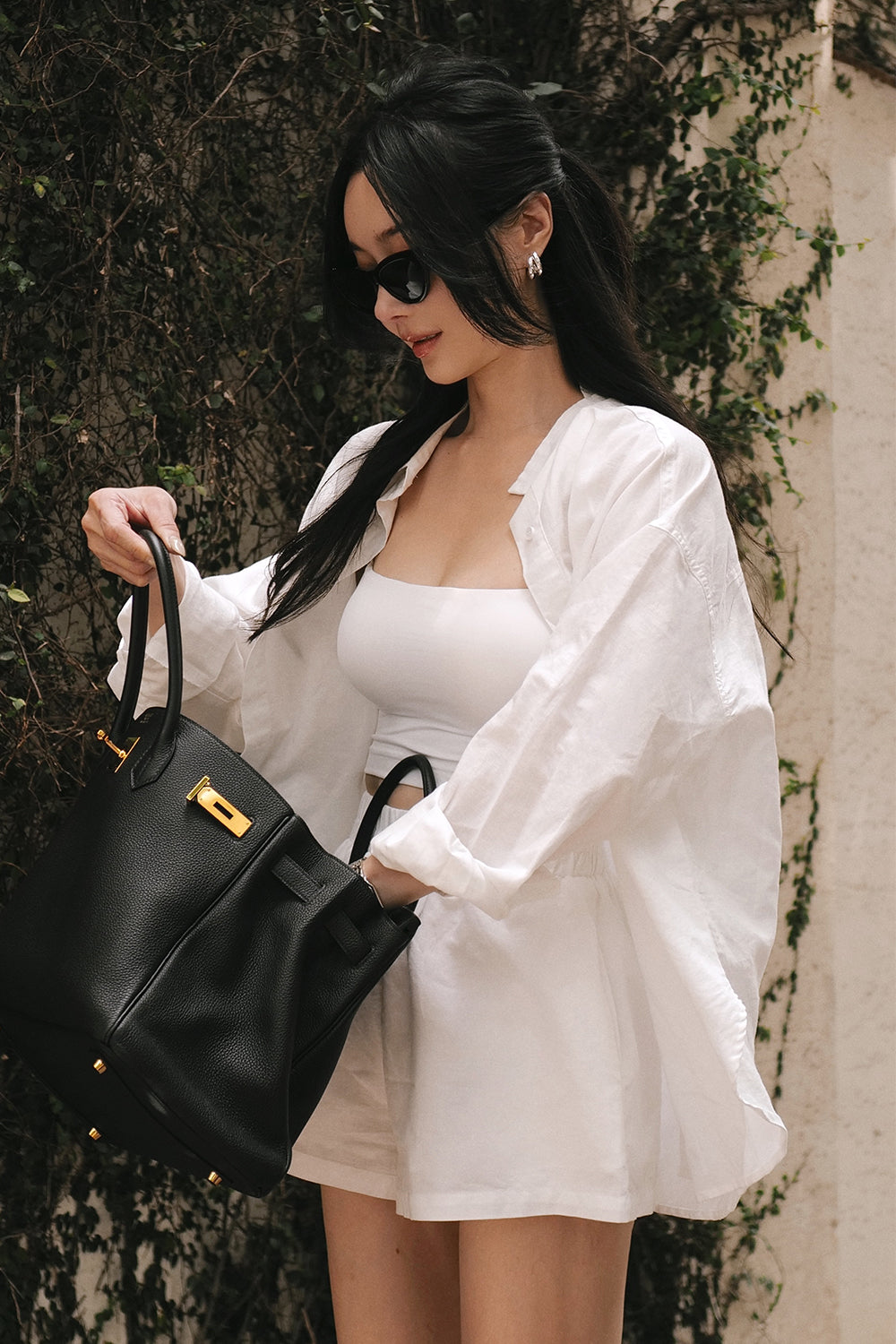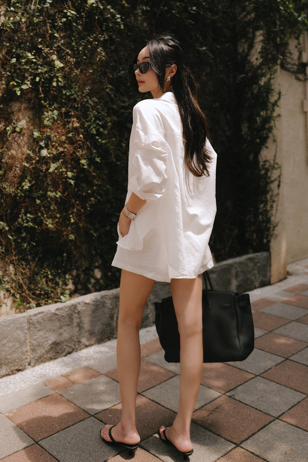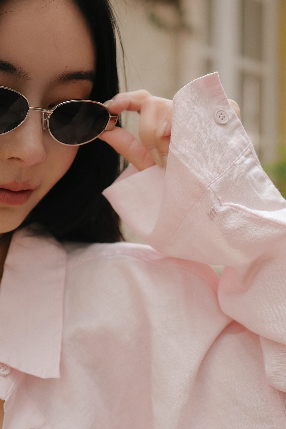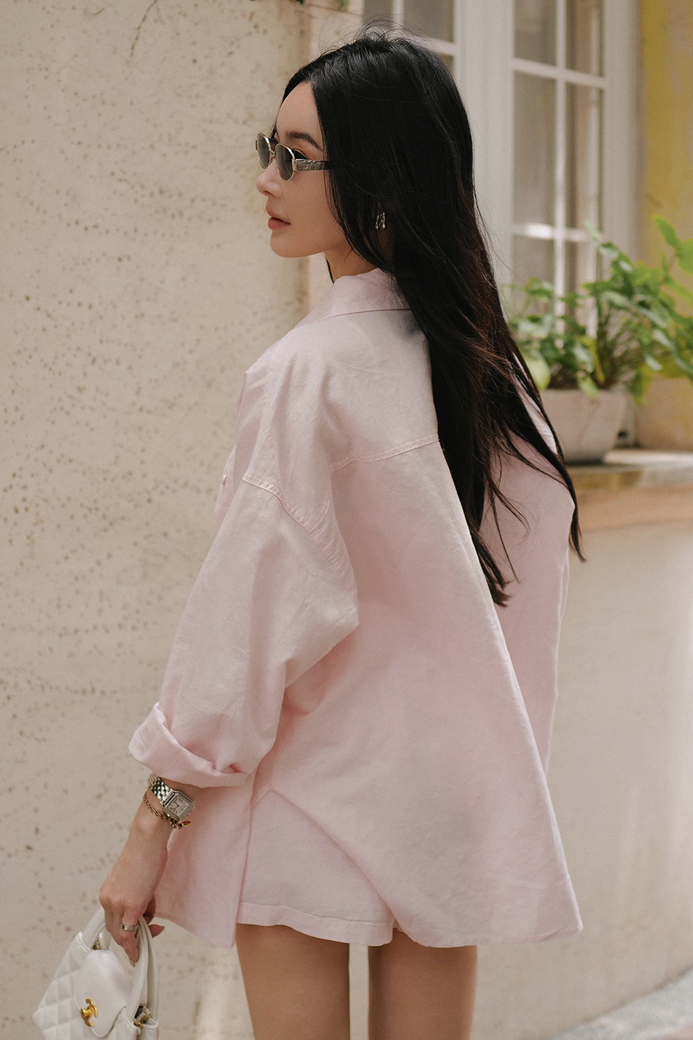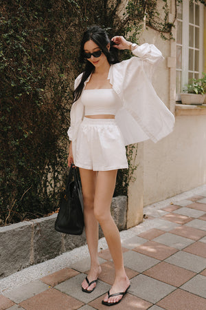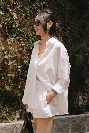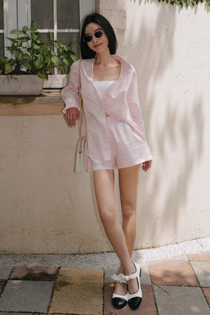Cotton-Linen Long Sleeve Shirt & Waist Shorts Set