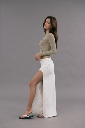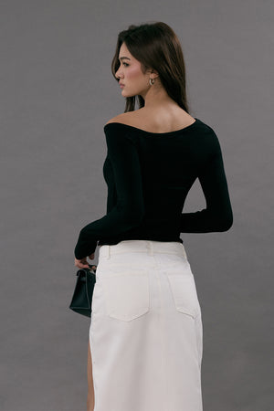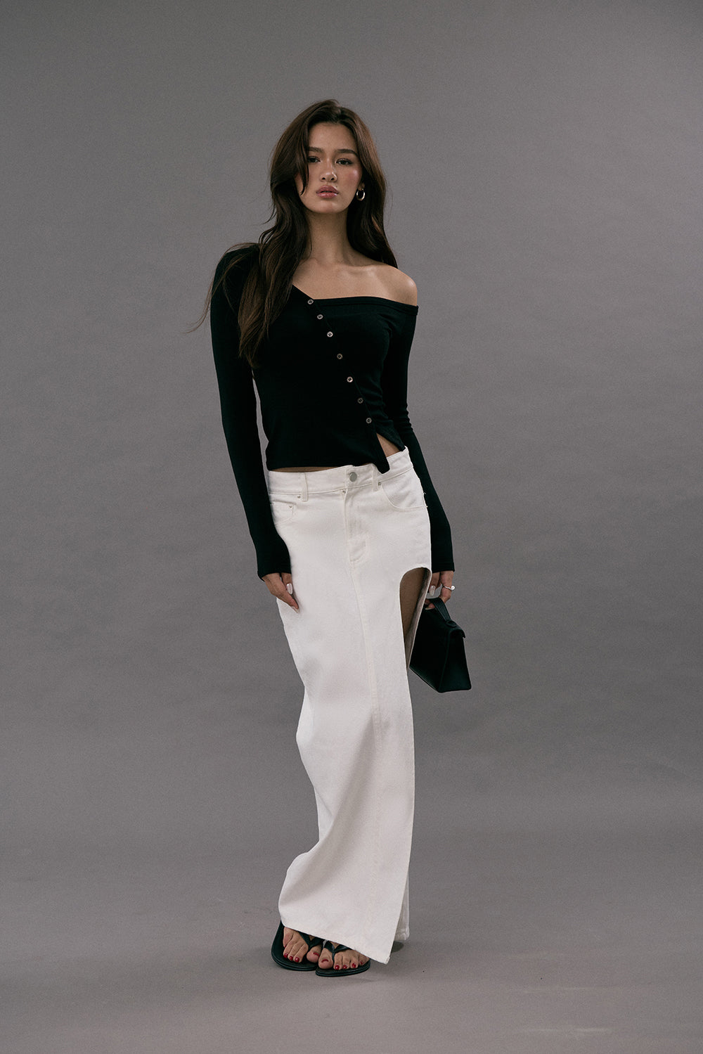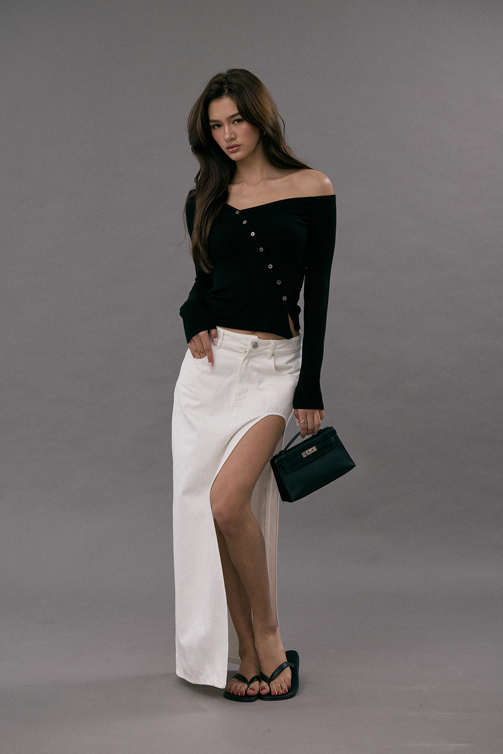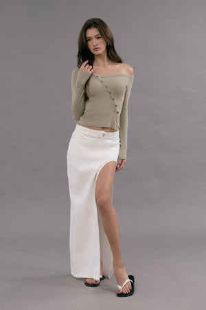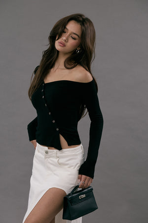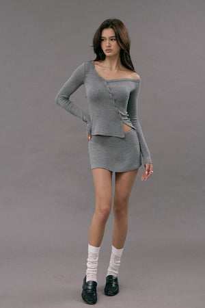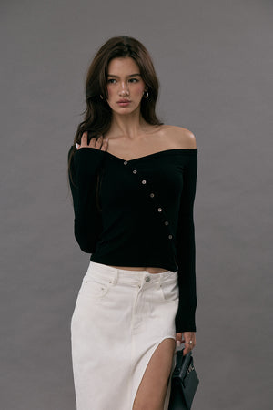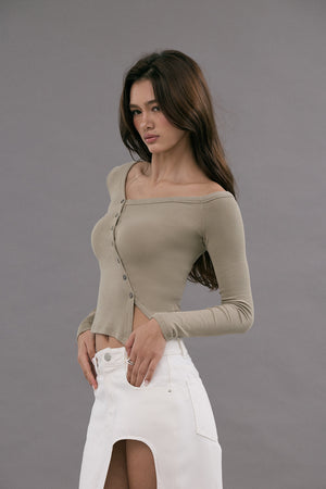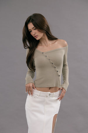 Elegant Rib Asymmetric Button-Up Long Sleeve Top