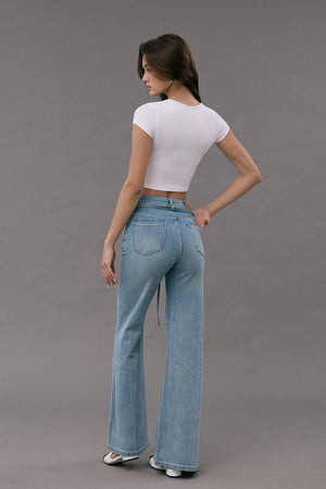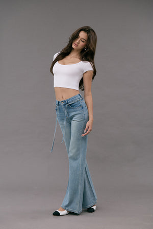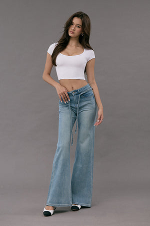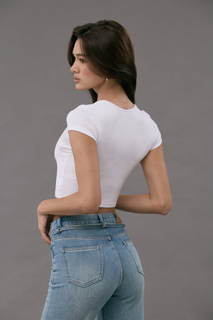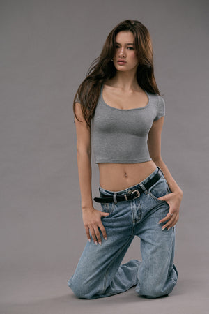 Elegant Rib Deep U-Neck Short Sleeve Top