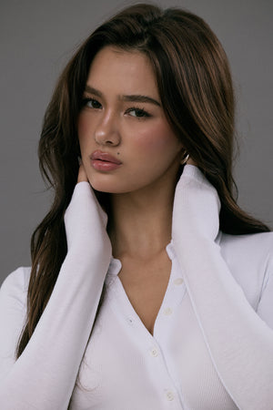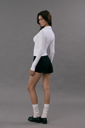 Elegant Rib Polo Collar Asymmetric Button-Up Long Sleeve Top