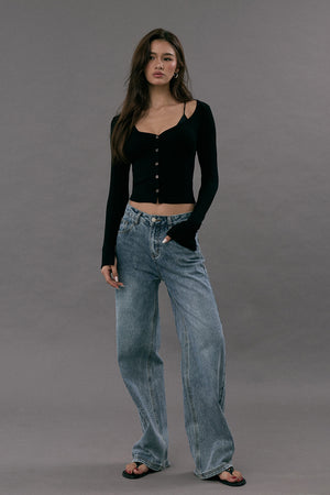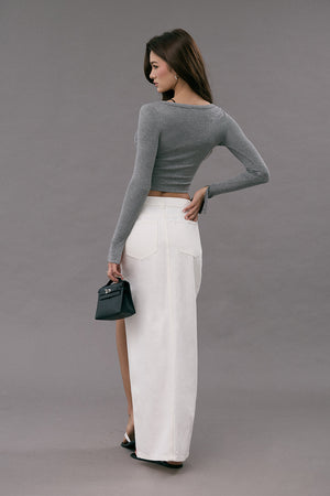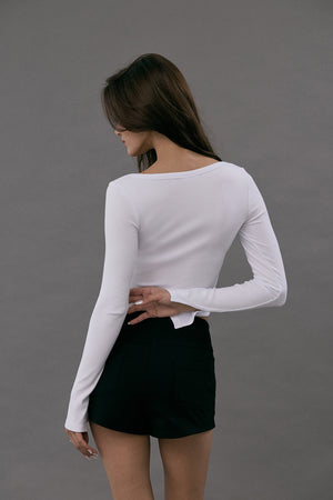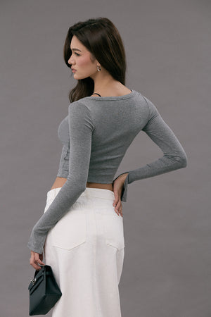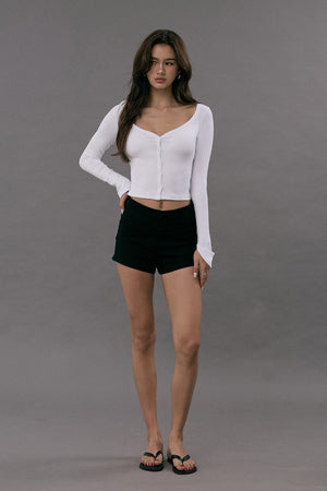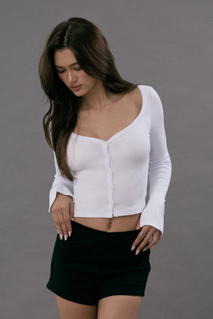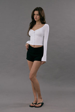 Elegant Rib Sweetheart Neckline Cropped Button-Up Top