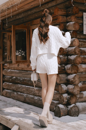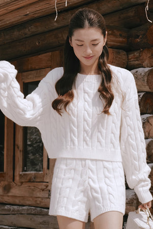 Gentle Touch Cable Knit Long-Sleeve Crop Top