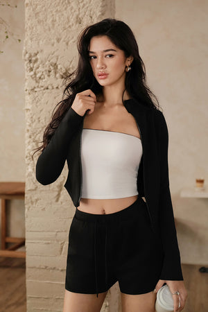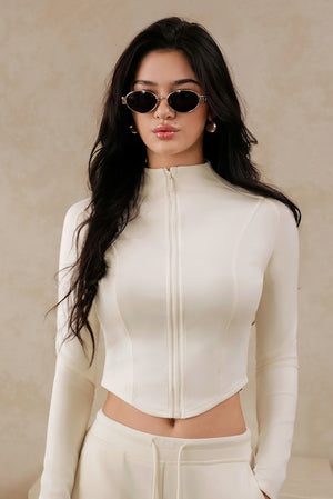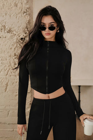 Peach Skin High-Neck Zip Hoodie Jacket