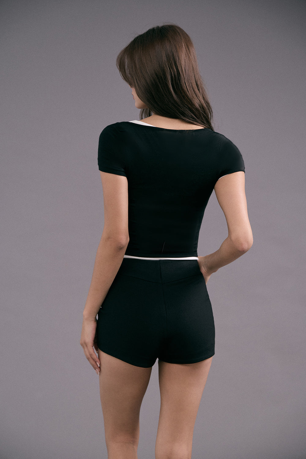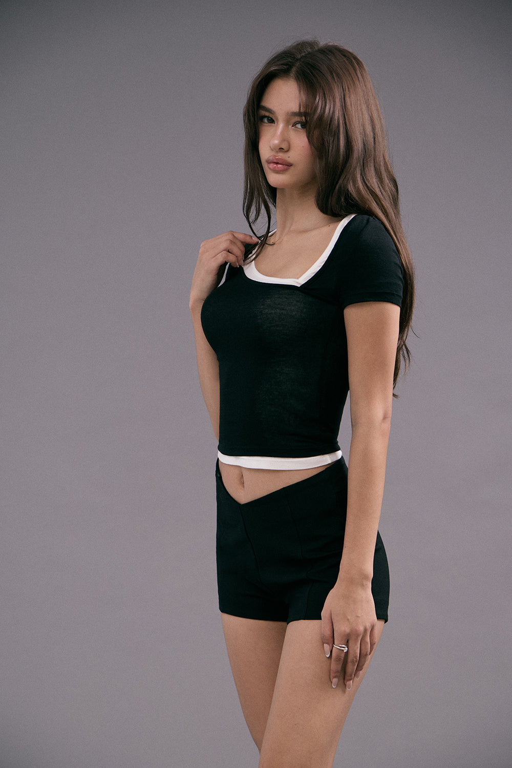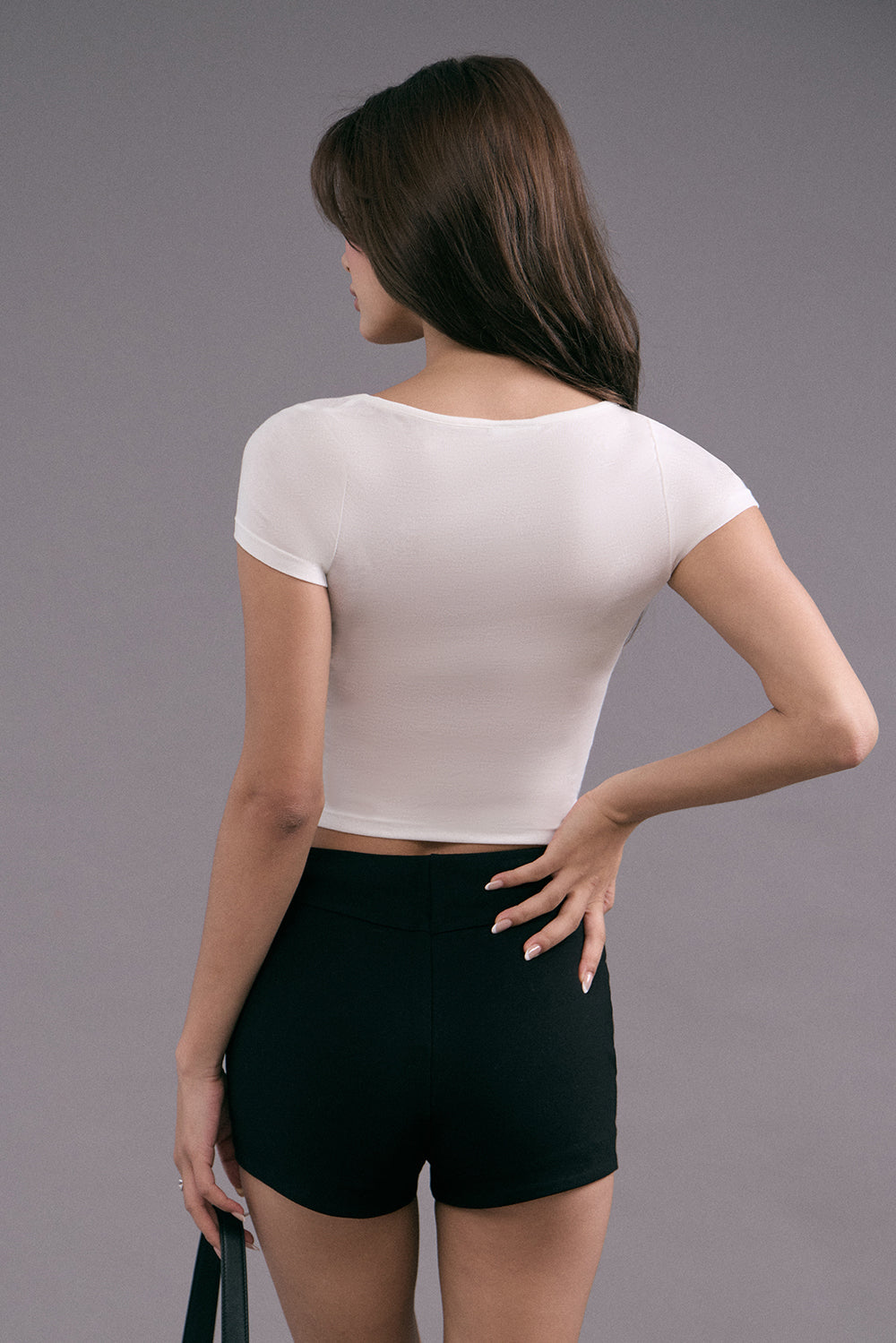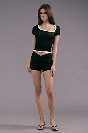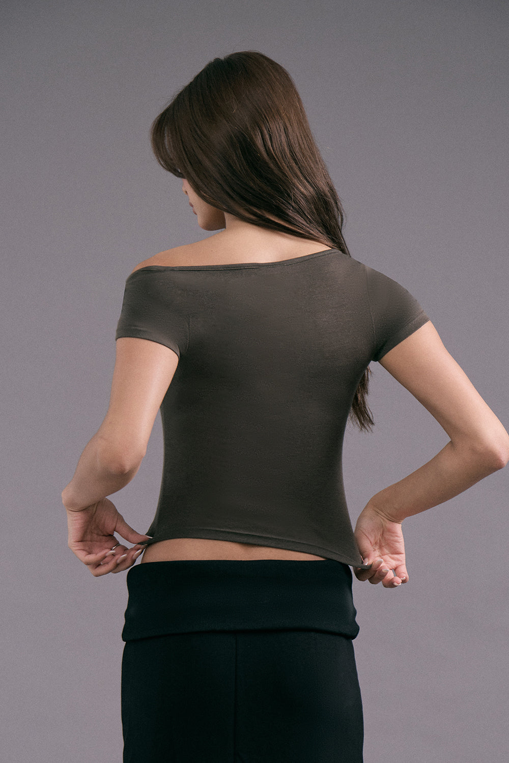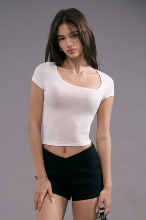 極柔天絲兩穿式短袖上衣 Tencel Wool Asymmetrical Neck Sleeve Top