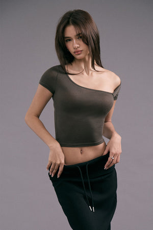 Tencel Wool Asymmetrical Neck Sleeve Top