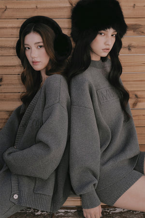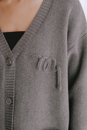 Cotton ribbed knit logo cardigan