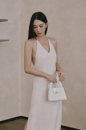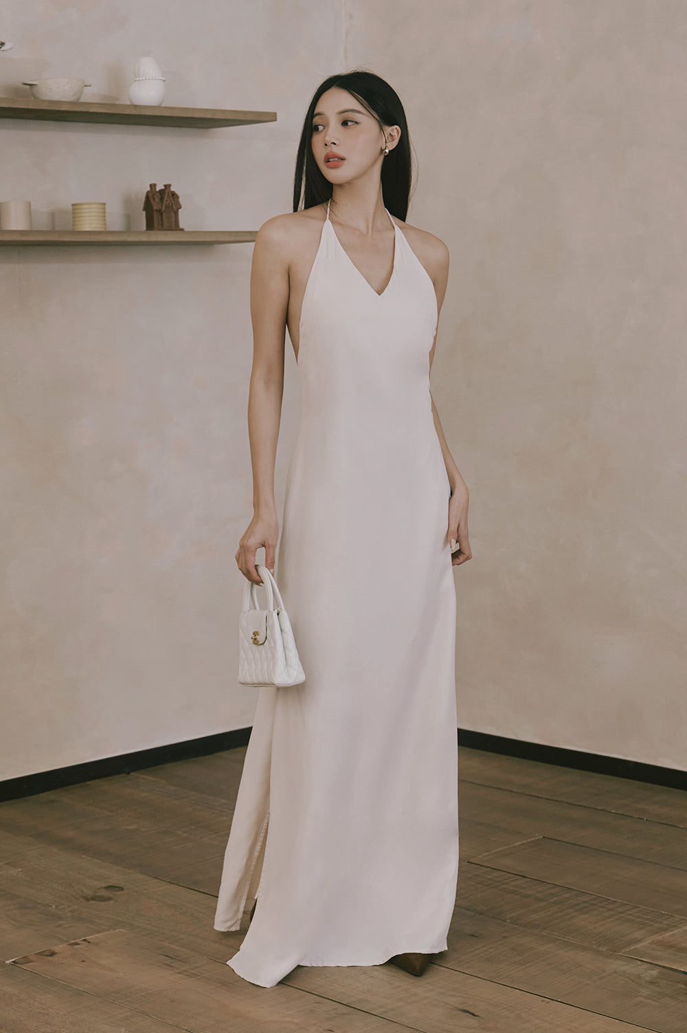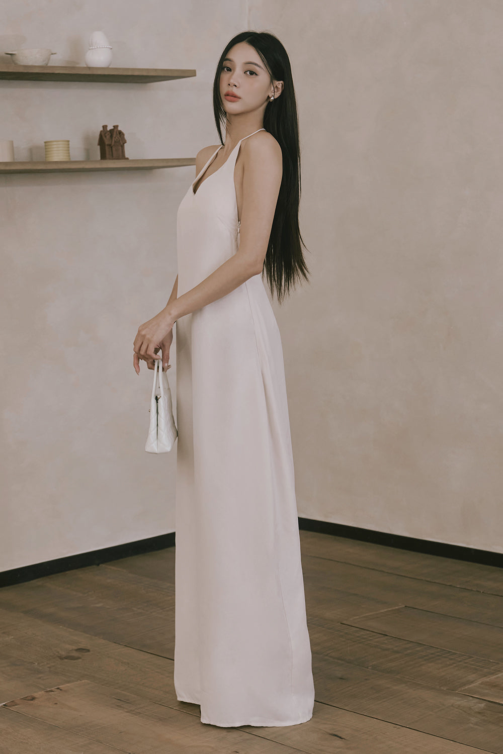 Cupro V-Neck Spaghetti Strap Halter Bra Dress
