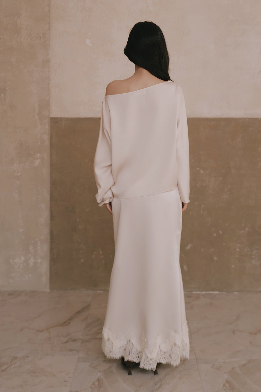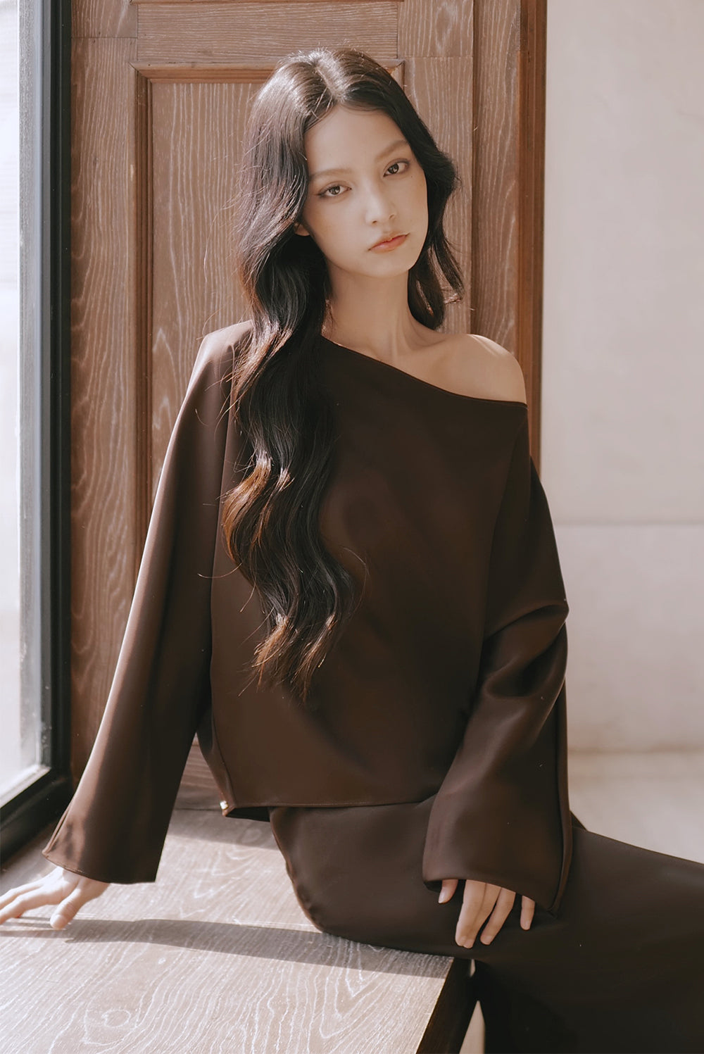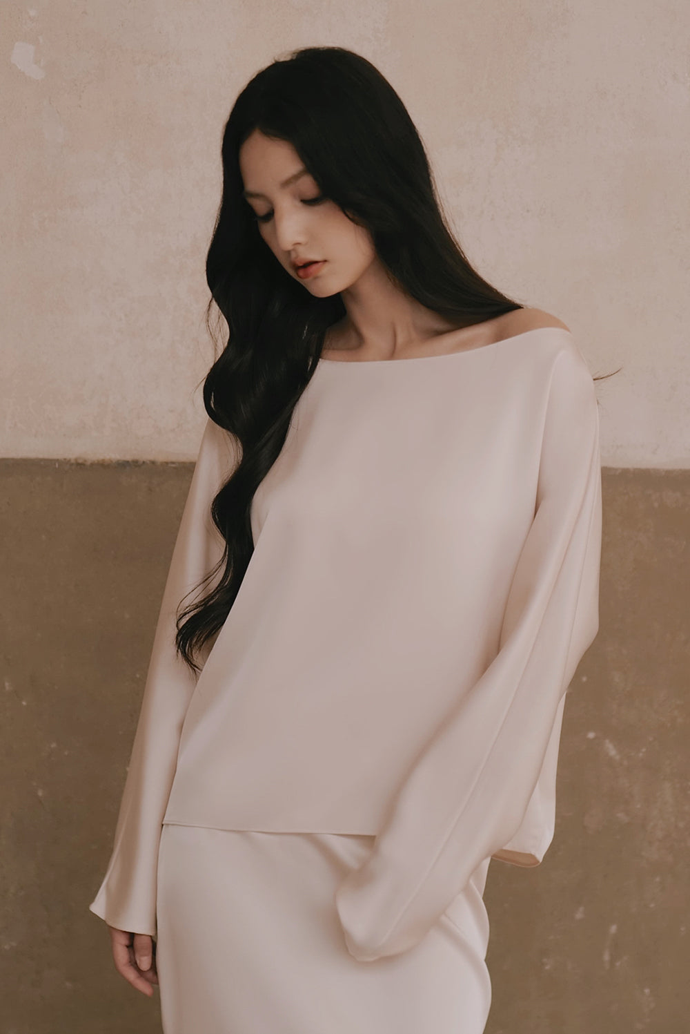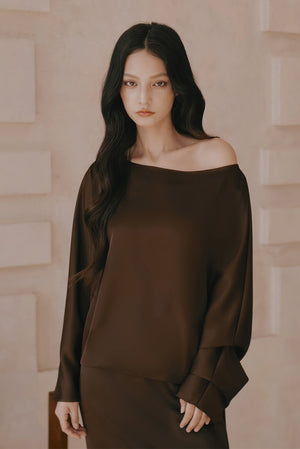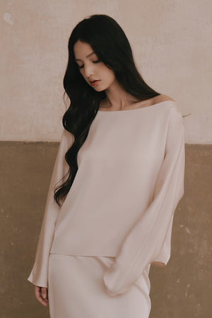 Satin Asymmetrical Off-Shoulder Long Sleeve Top