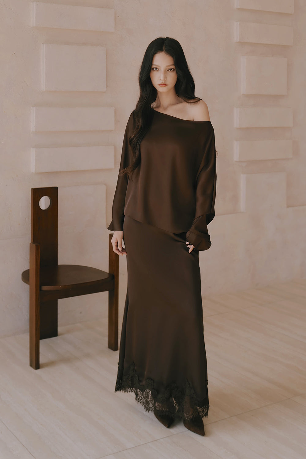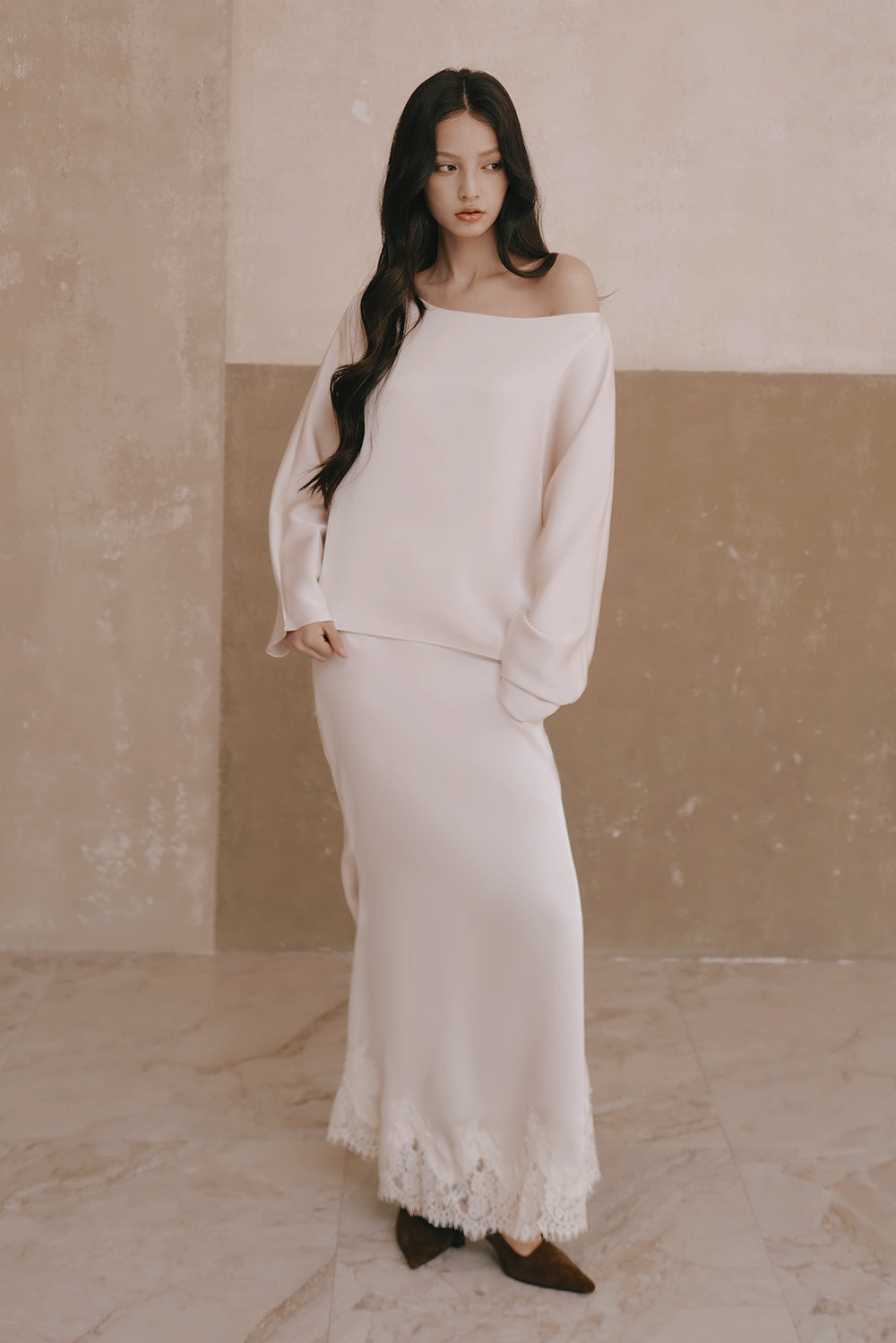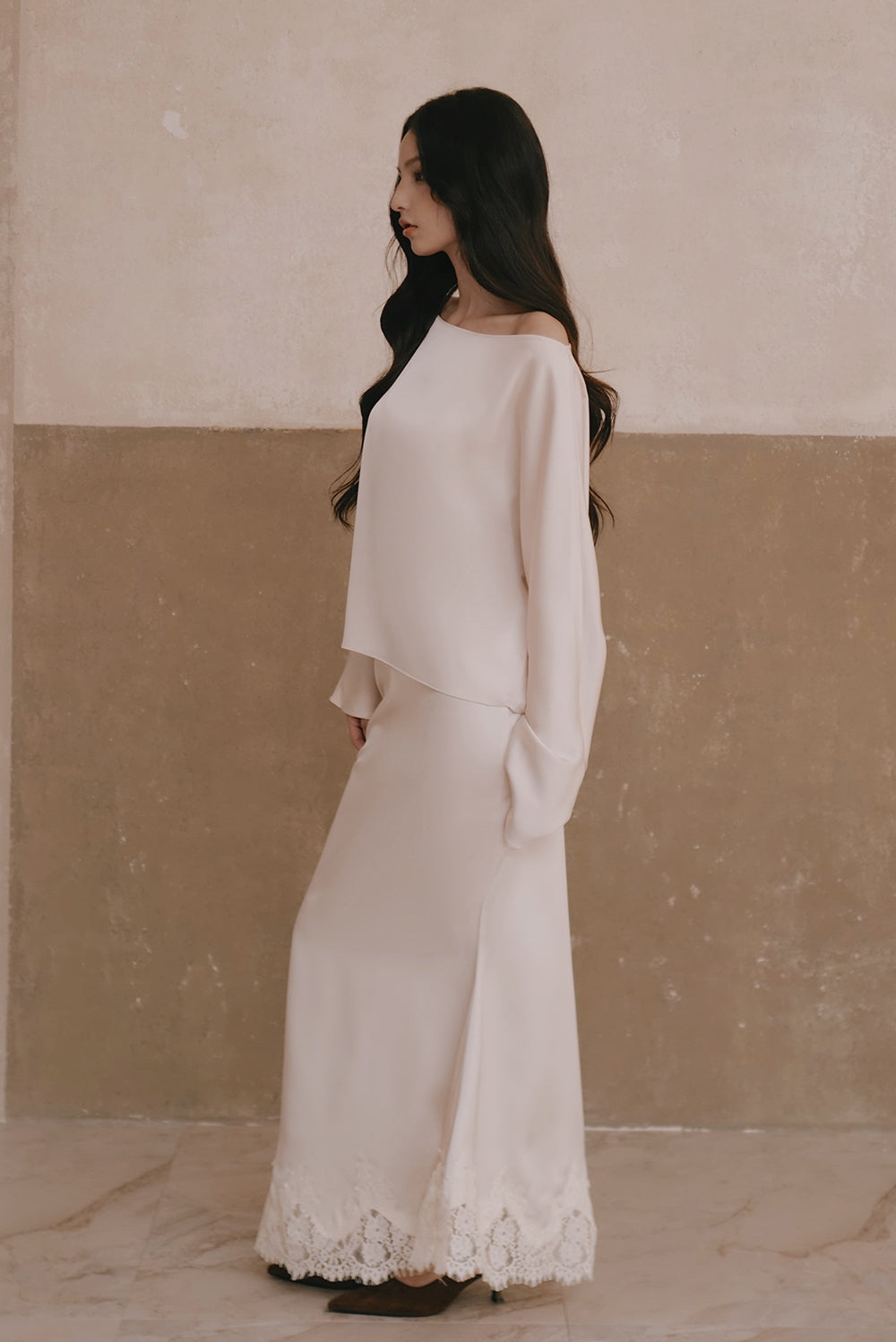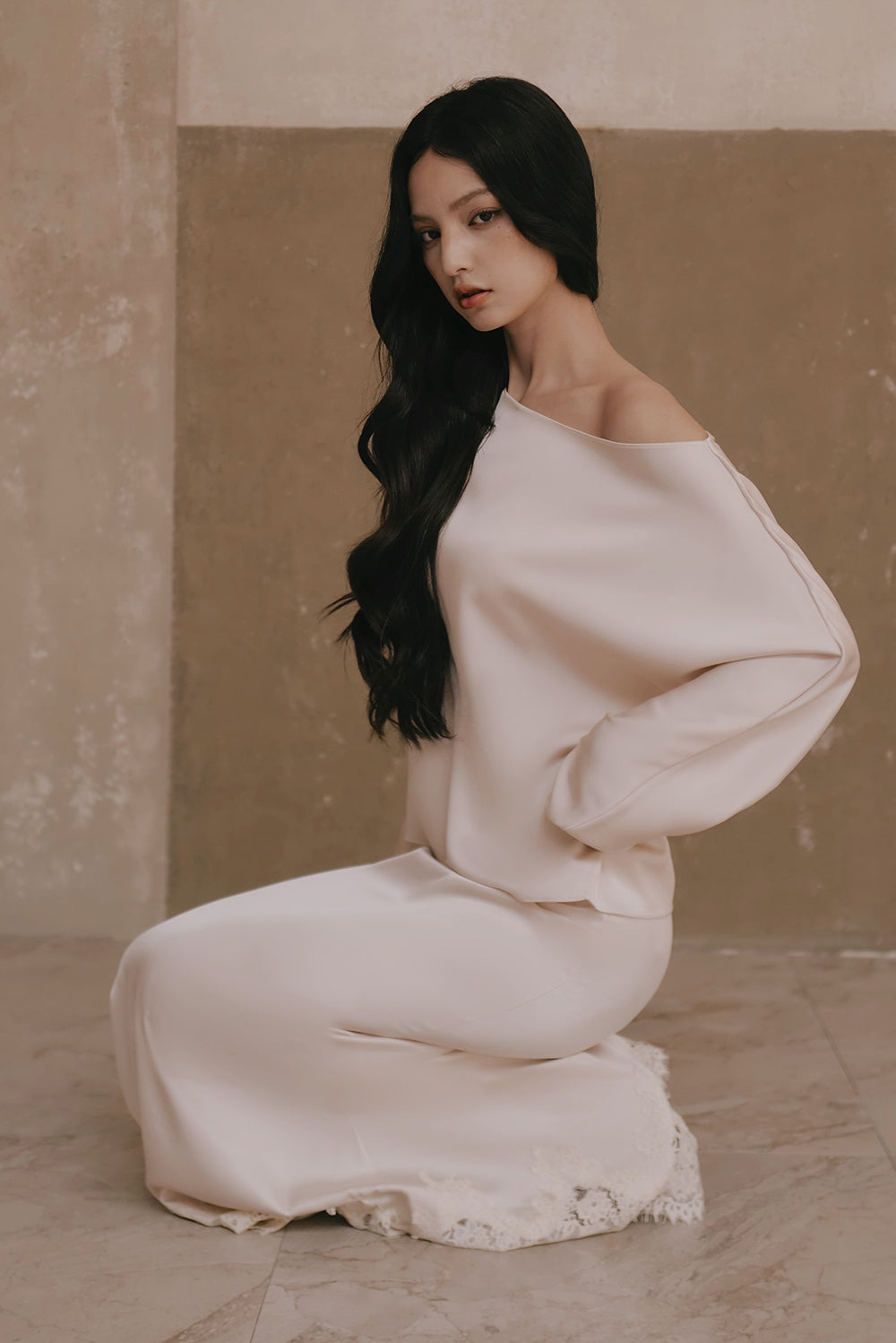 Satin Asymmetrical Off-Shoulder Long Sleeve Top