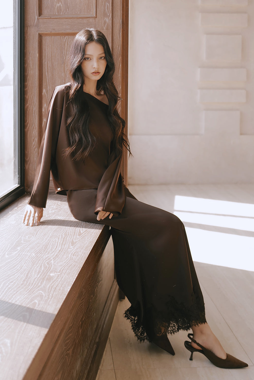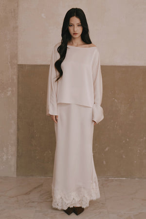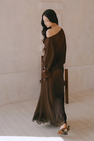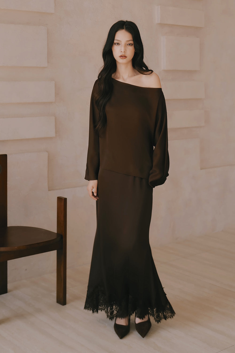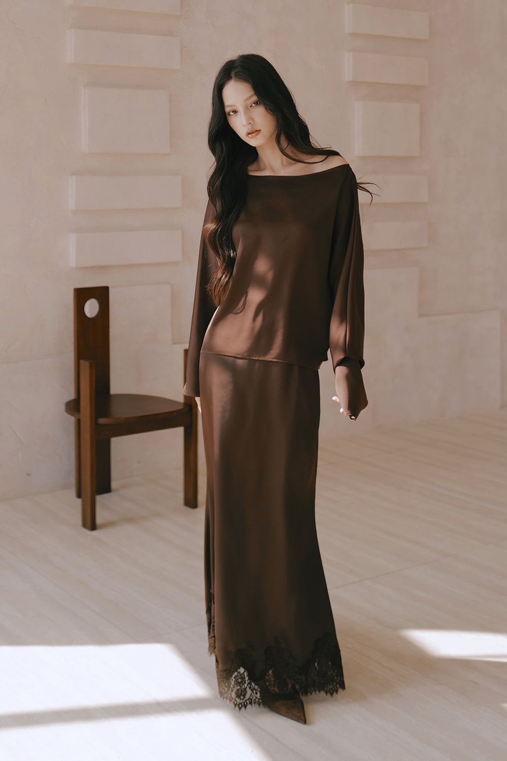 Satin Asymmetrical Off-Shoulder Long Sleeve Top