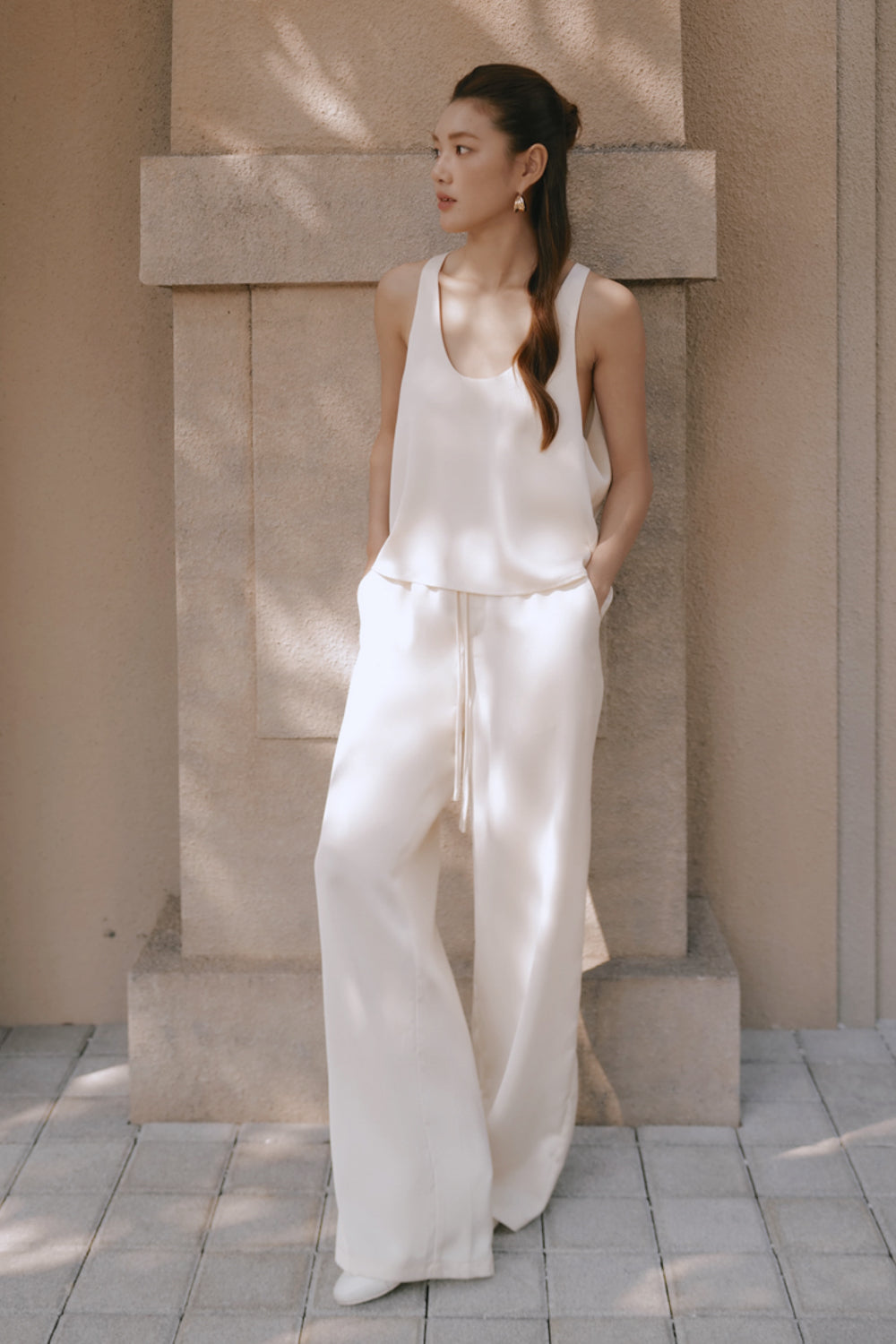 Satin Drawstring Wide-Leg Pants