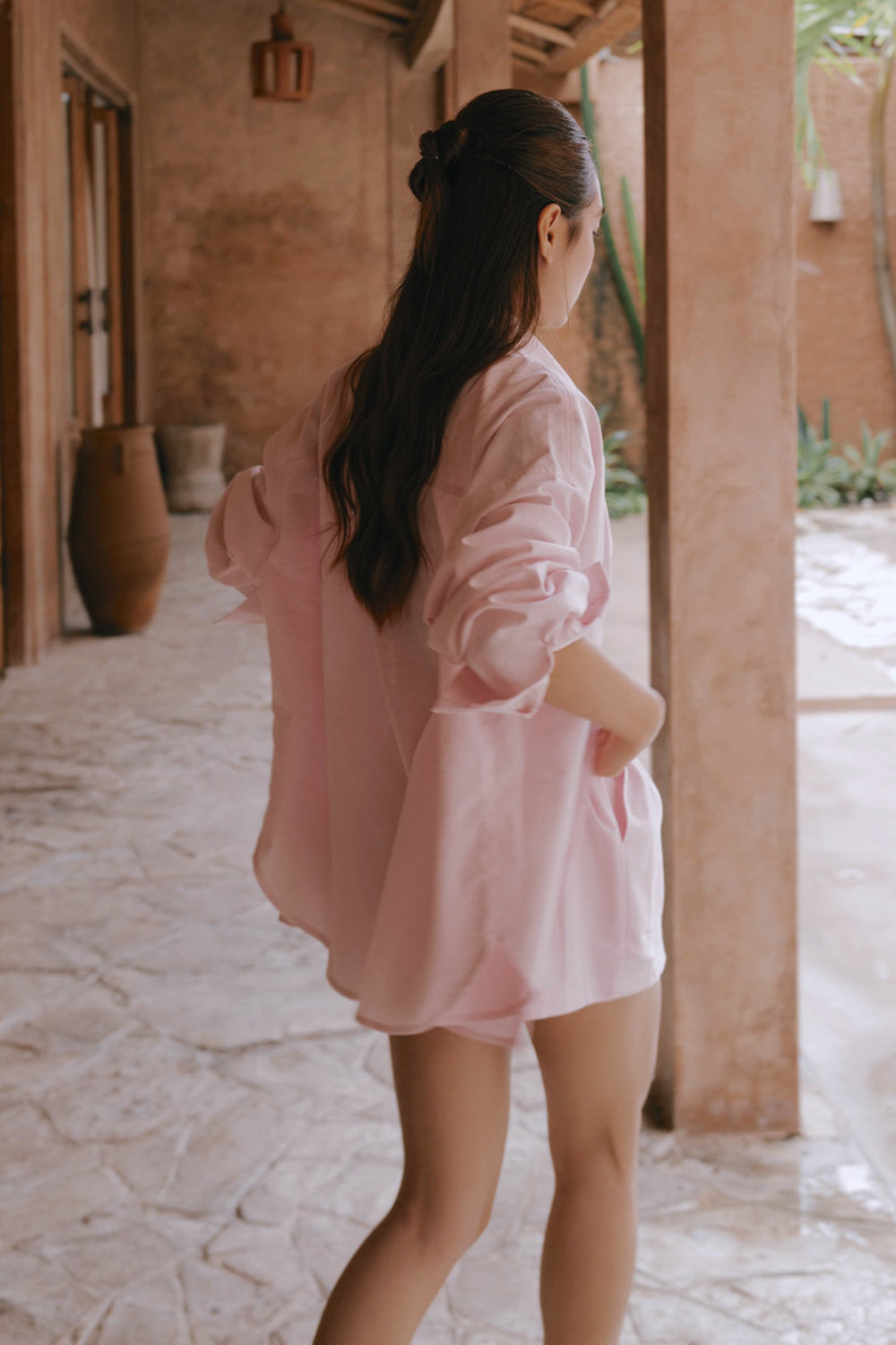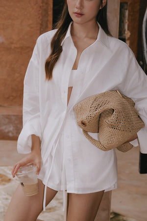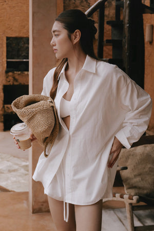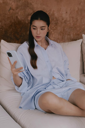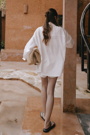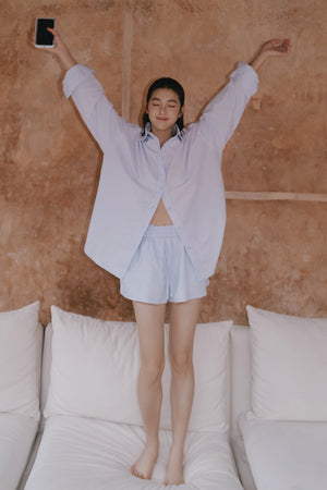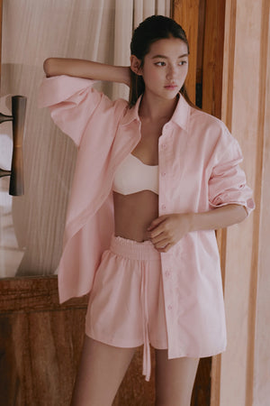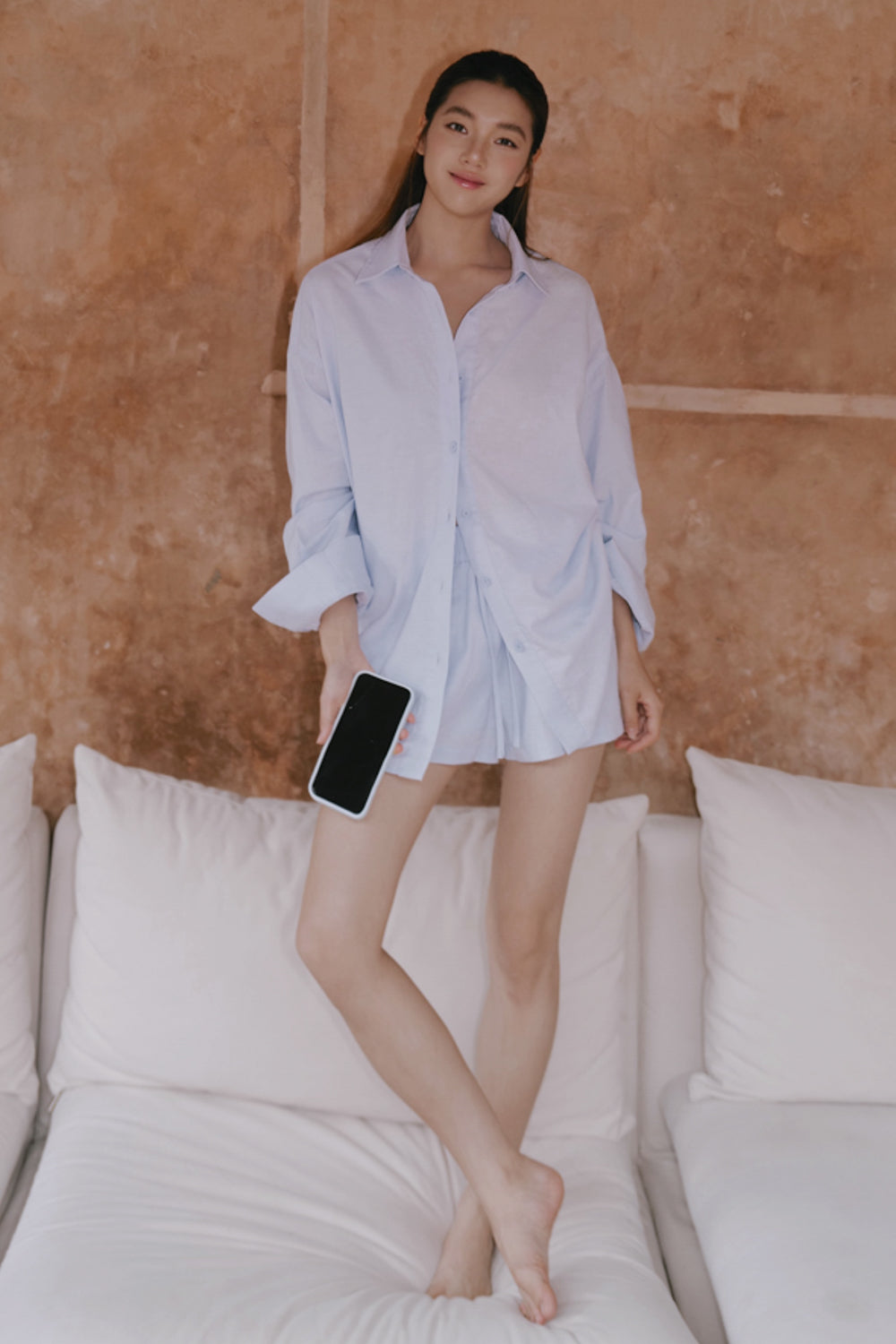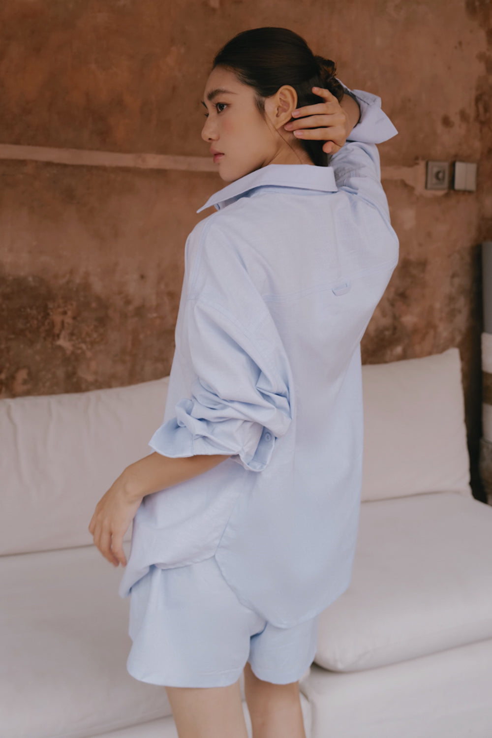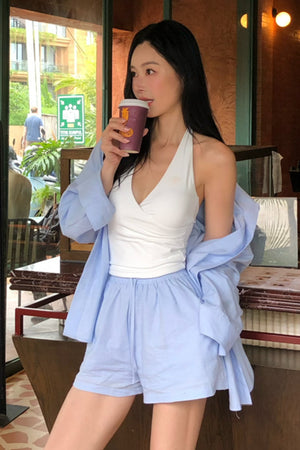 Stain-Resistant Cotton-Linen Long Sleeve Shirt & Waist Shorts Set